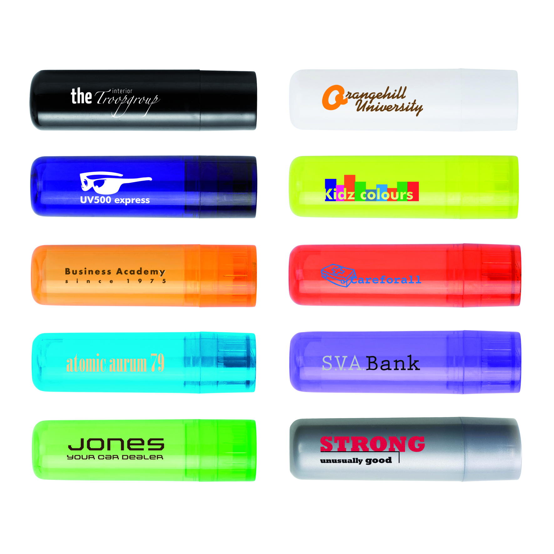 Translucent plastic lip balm stick (white, black and silver are solid colours) SPF15 protection.