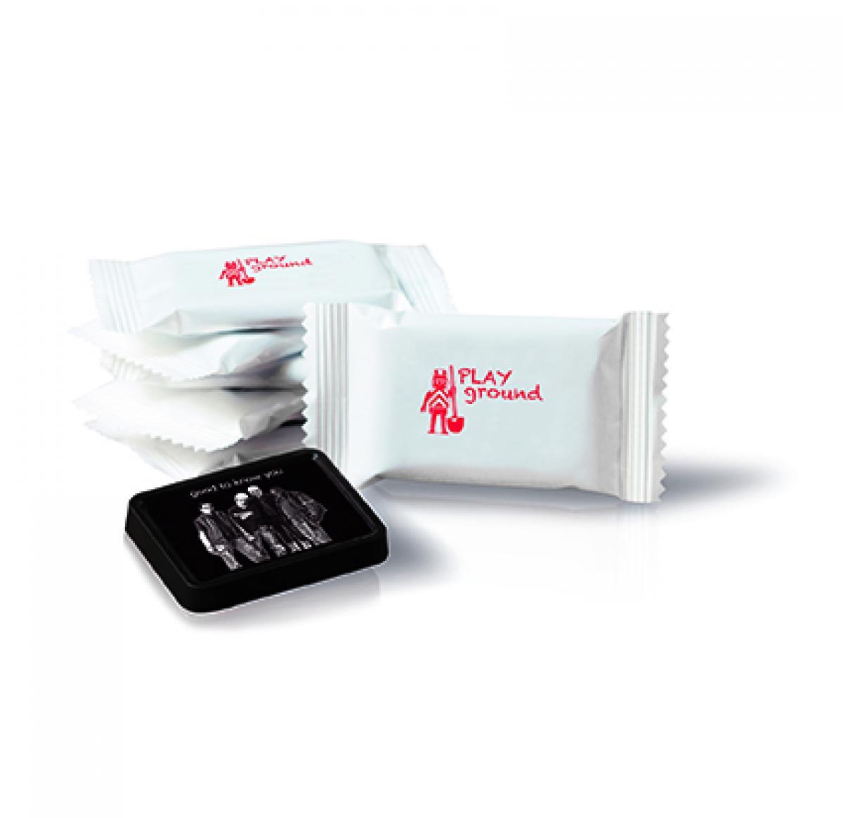 Box containing 10 x (5g) personalised chocolates with a coloured ribbon