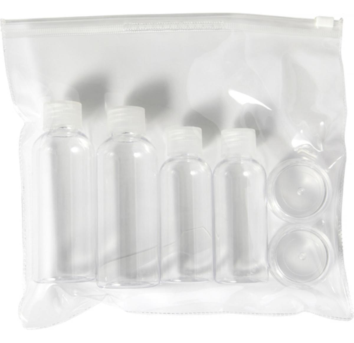 PETG travel kit which includes two 100ml bottles, two 50ml bottles, two 10ml containers and a small shovel.