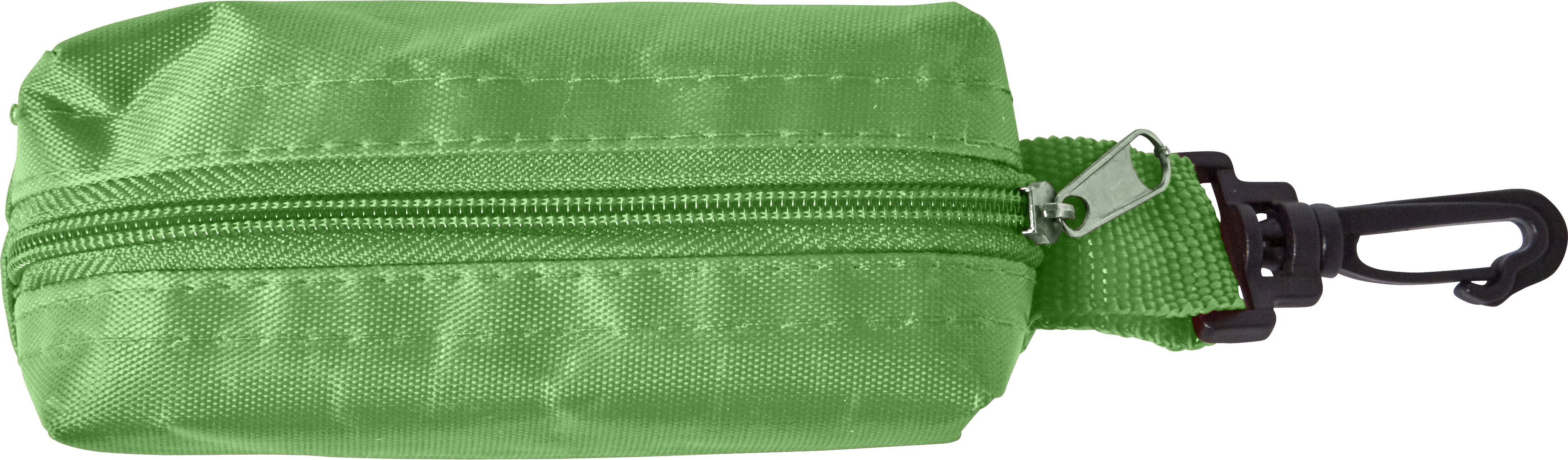 Eight pencils (sharpened) plus pencil sharpener in a nylon (70D) pouch with snap hook.