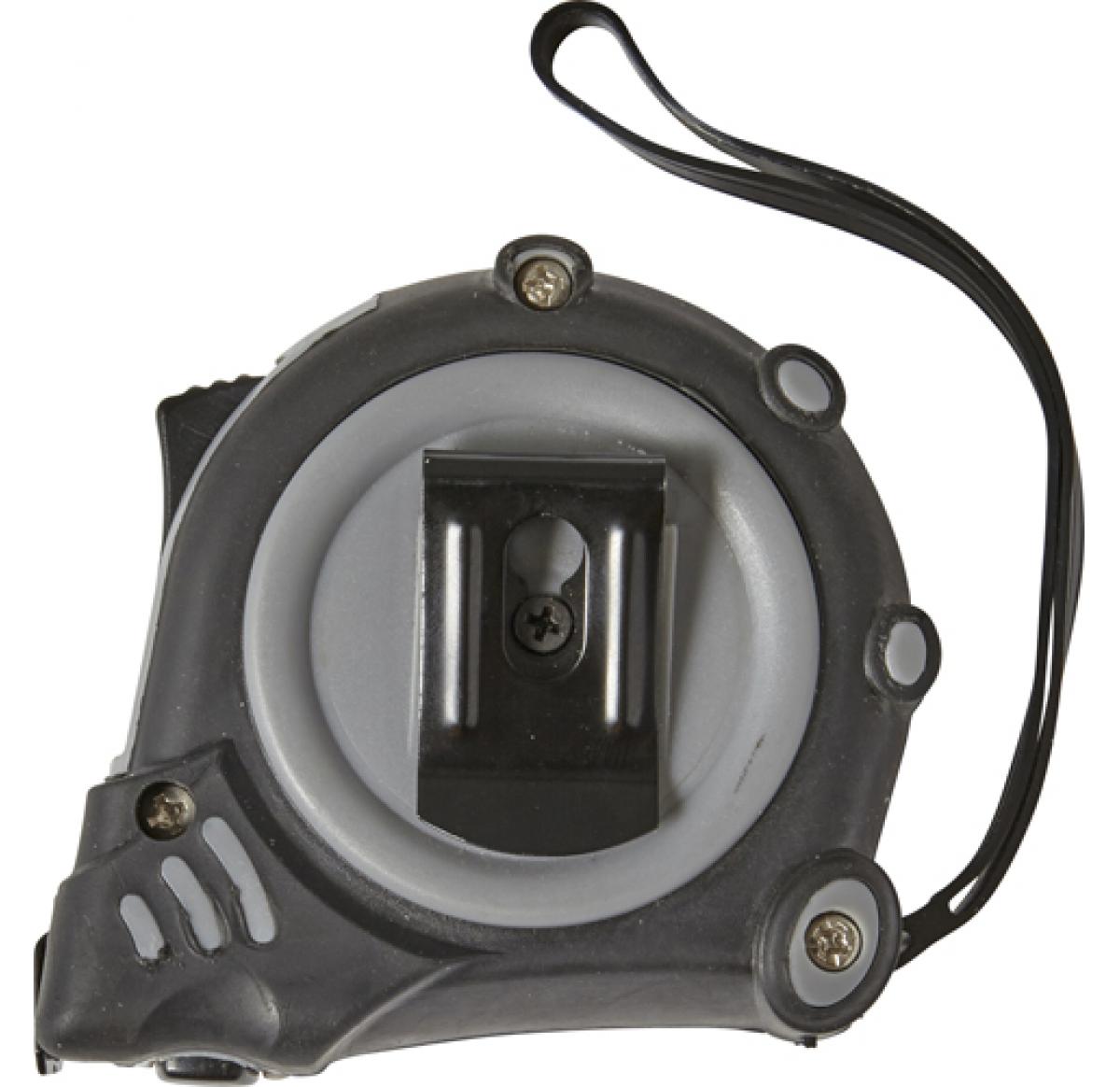5m Calibrated plastic tape measure with a scale in both inches and centimetres, with belt clip and wrist strap.
