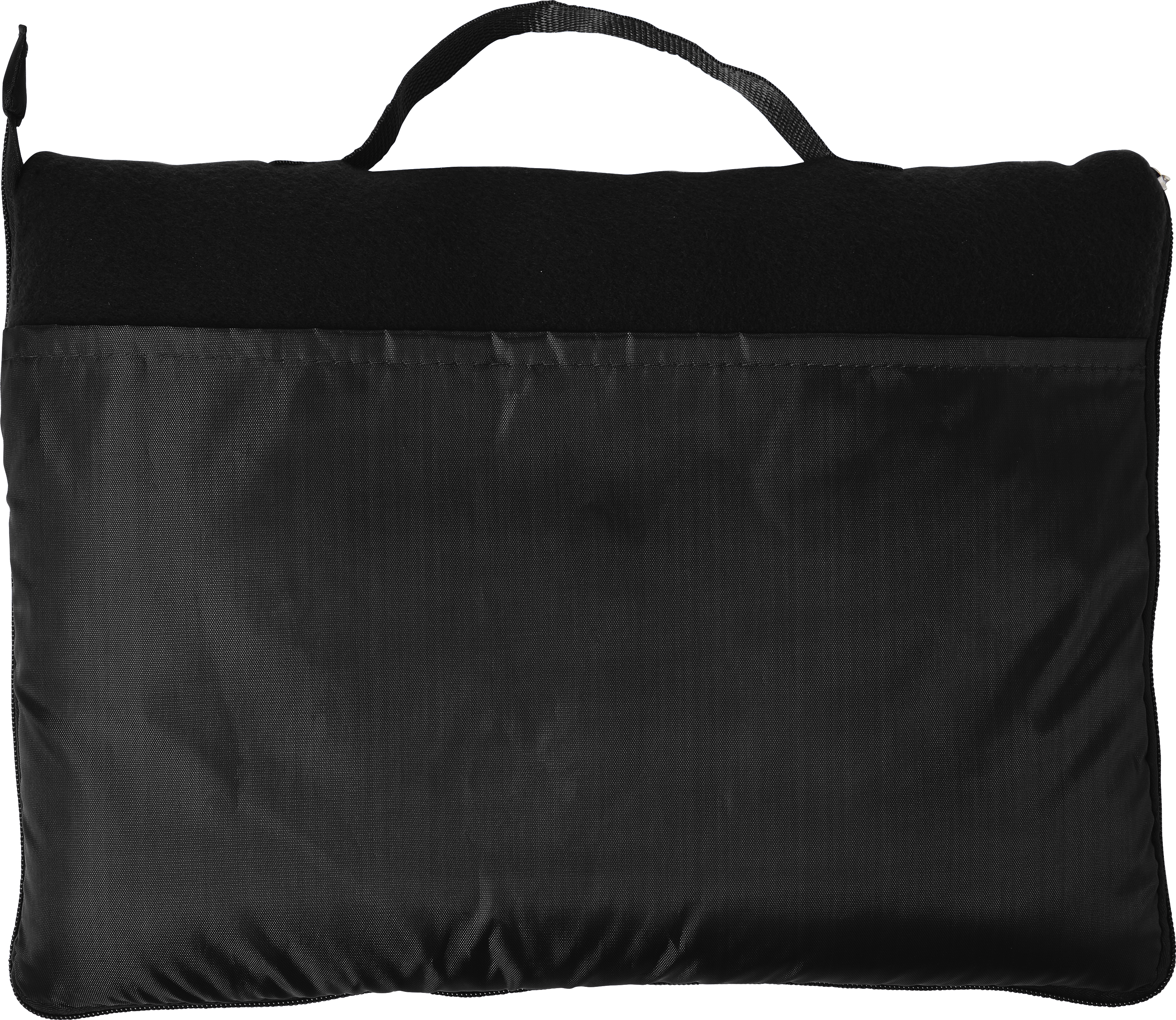 Fleece blanket (180 g/m2) packed in a polyester carry bag with zipper and front pocket.