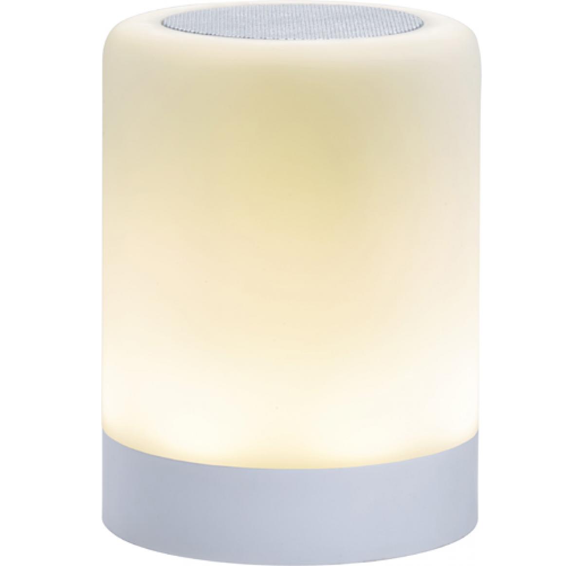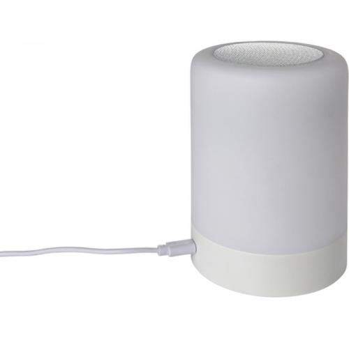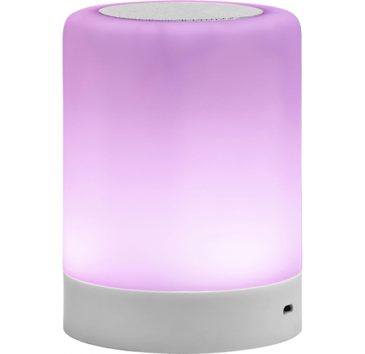Wireless speaker which lights up with different colours. The three control buttons are at the bottom of the speaker. Input 5V/1A. Battery 3.7V/1500mAh. Speaker 3 Watt. Including a charging cable (USB - micro USB), 100 cm long.