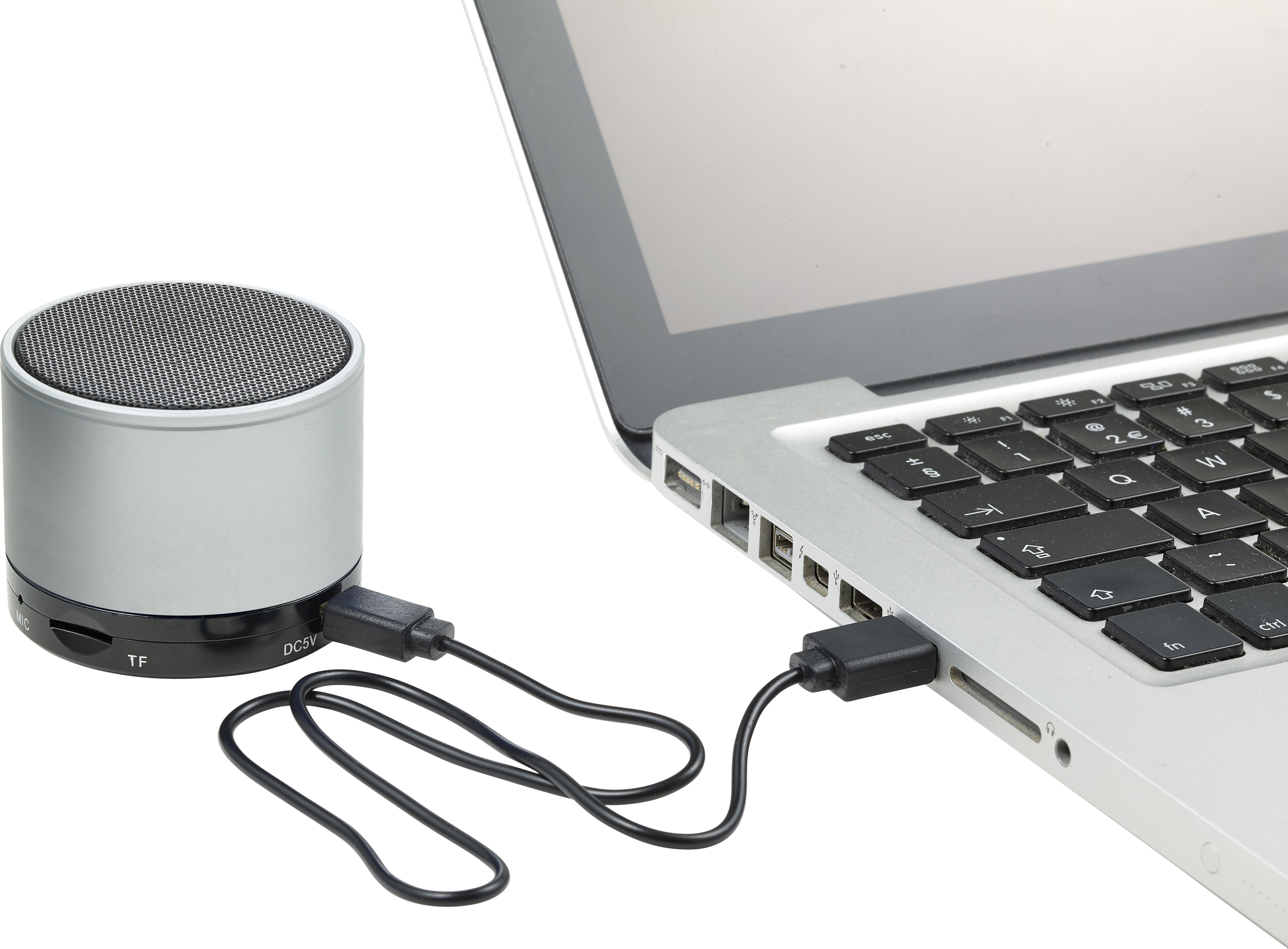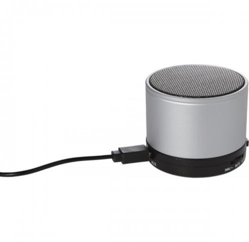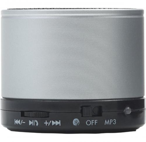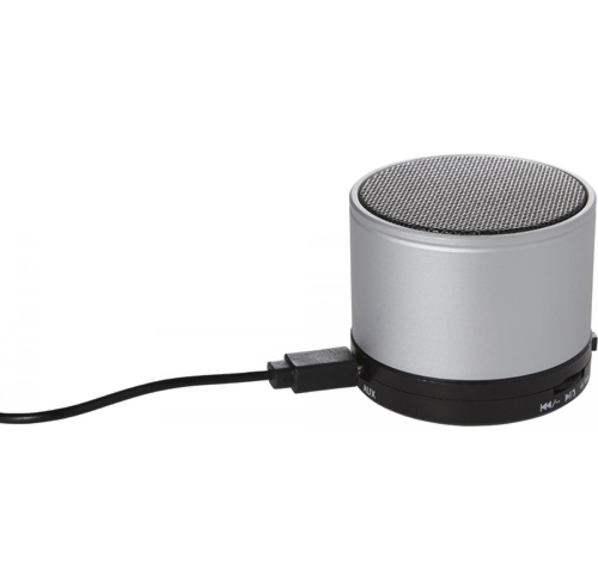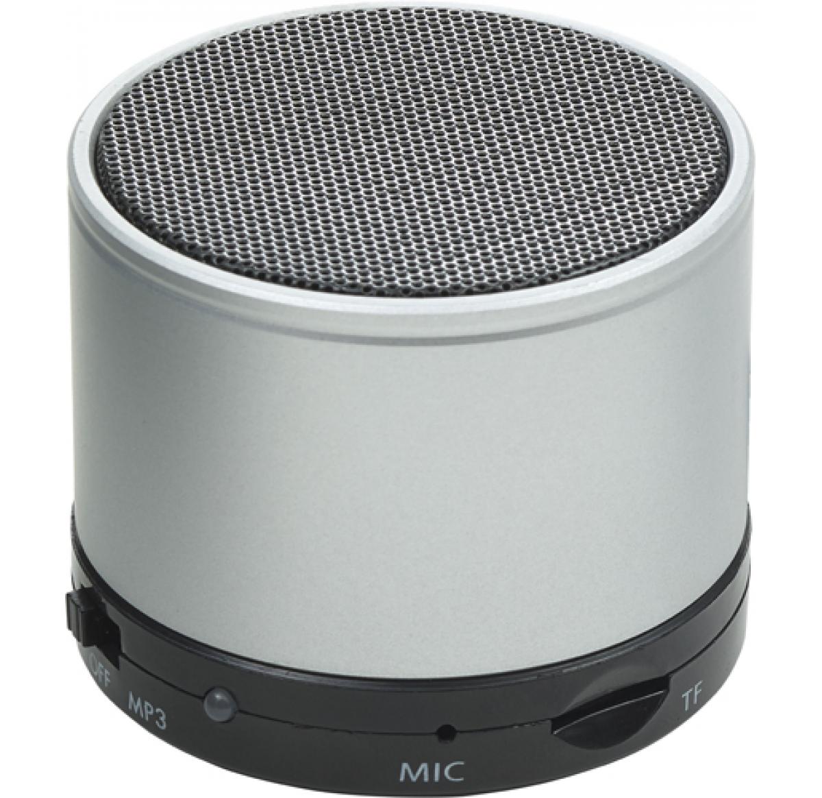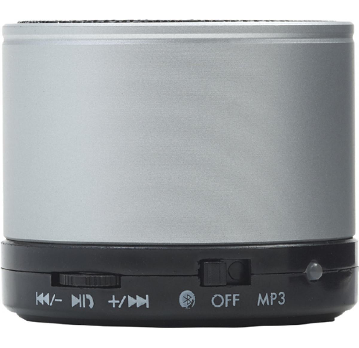 Metal, wireless speaker. Including volume wheel and buttons for rewind, forward and to switch between wireless mode, MP3 mode and off. Including charging cable (length 50 cm). Manual languages: English, Dutch, German, French, Spanish and Italian.