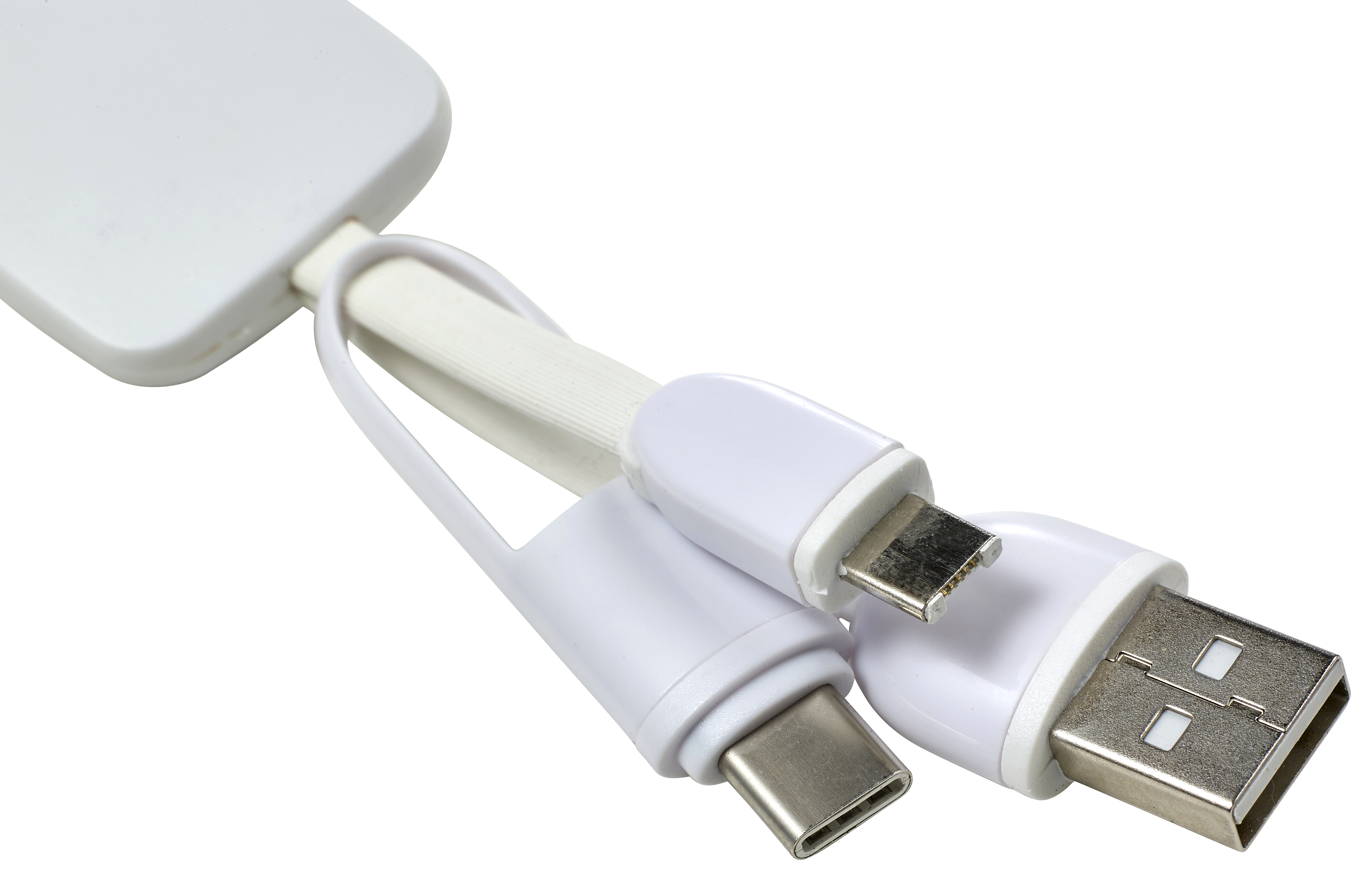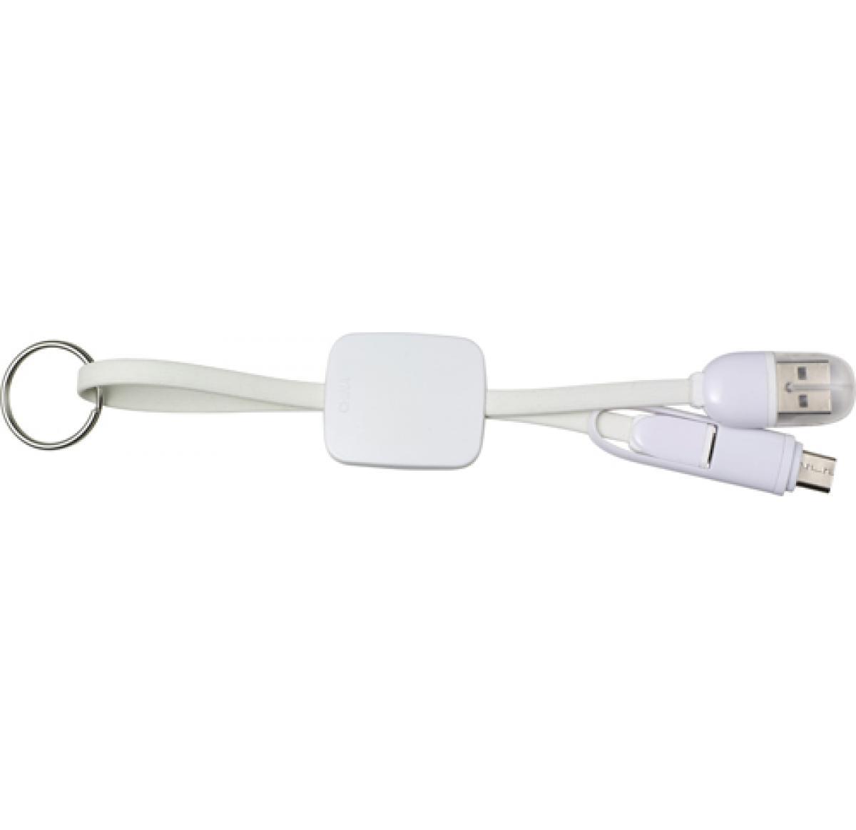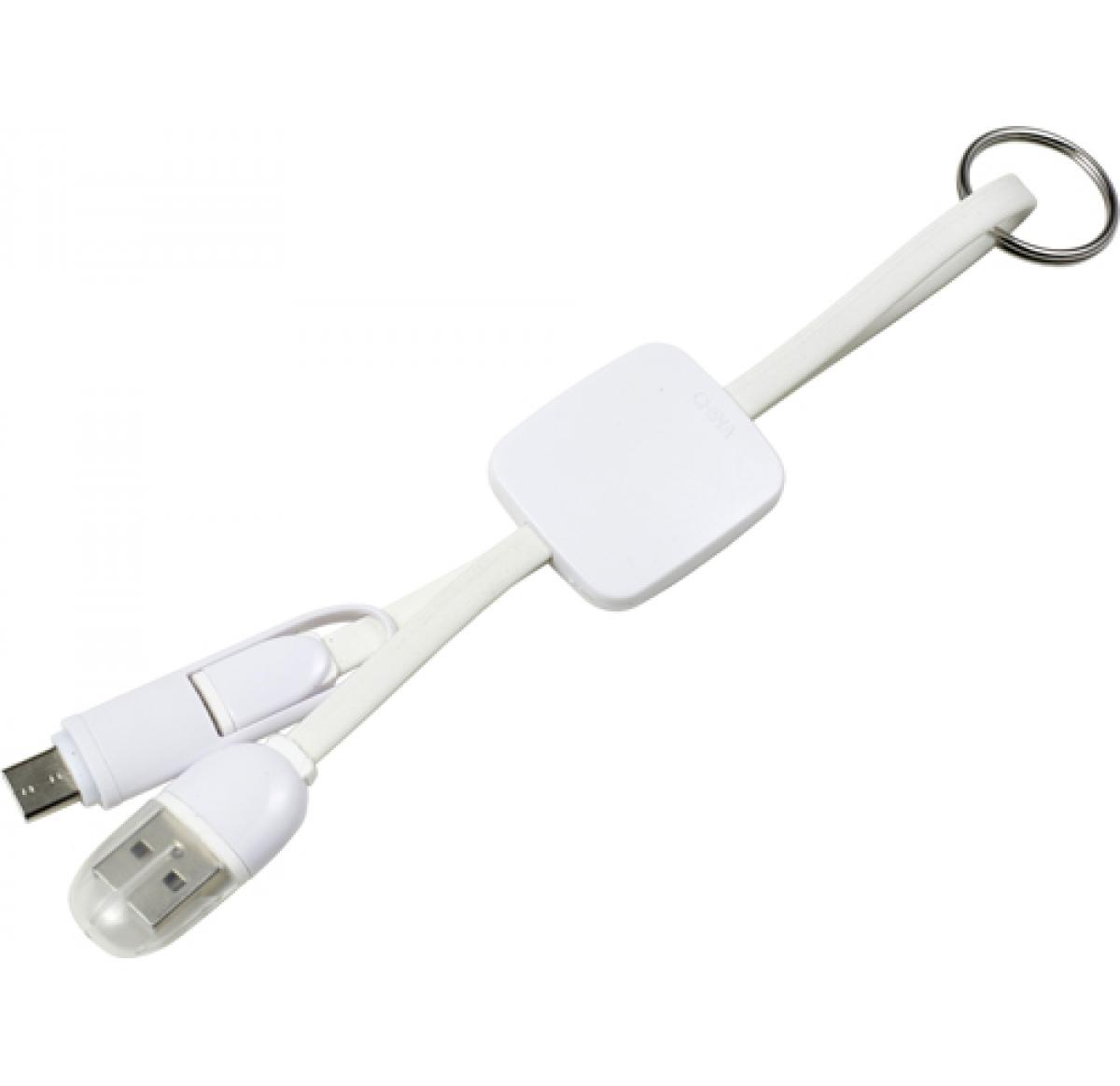 USB-C charging cable with steel key ring. Including two connectors: standard USB and micro USB.