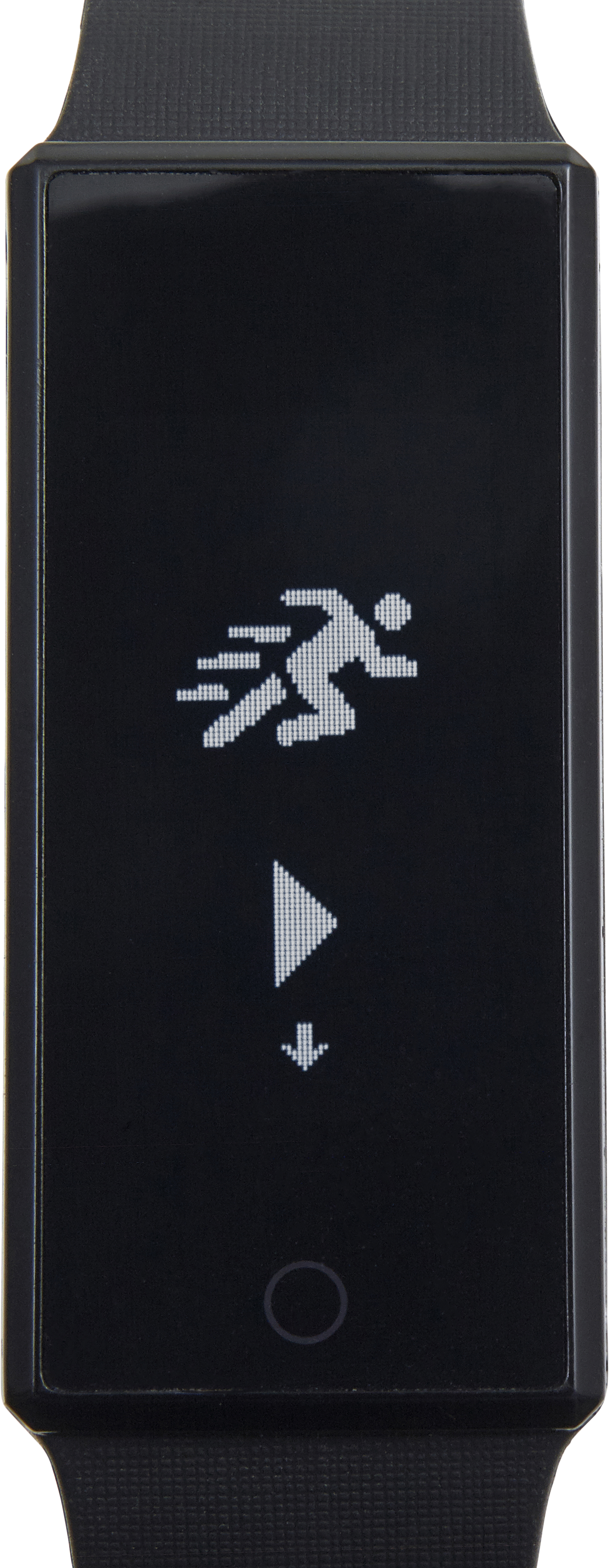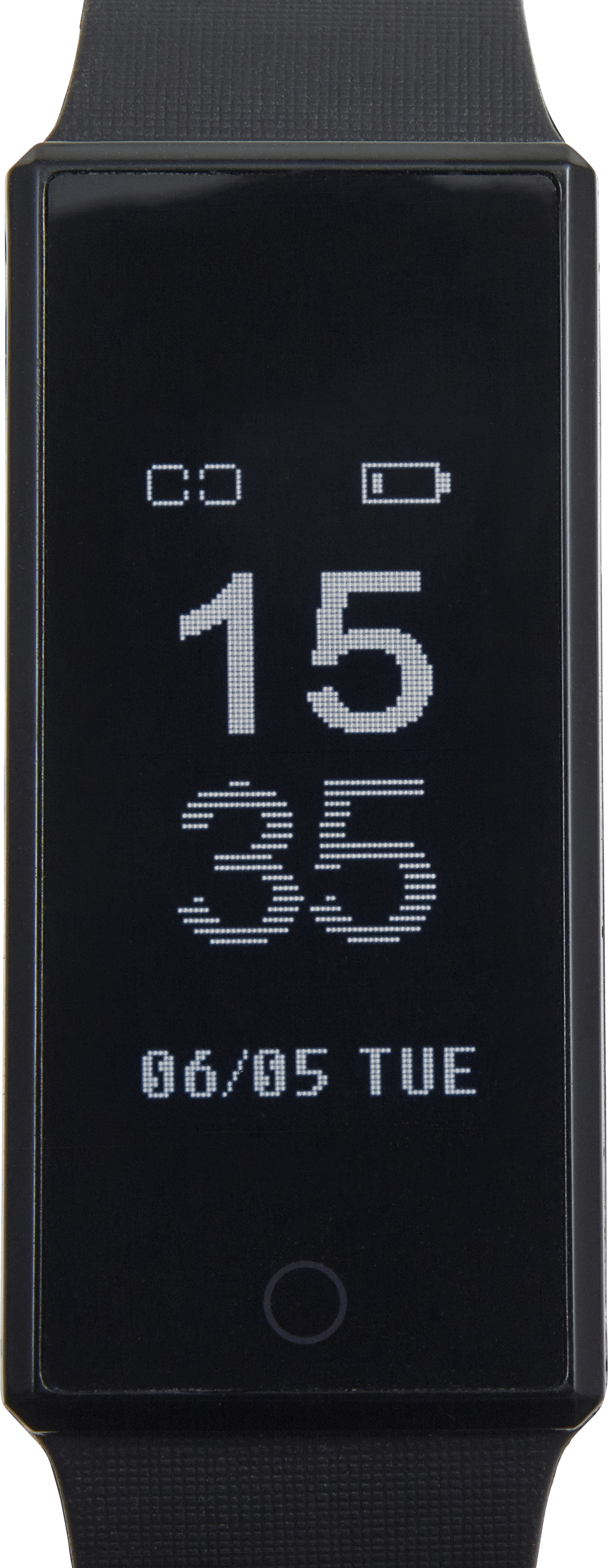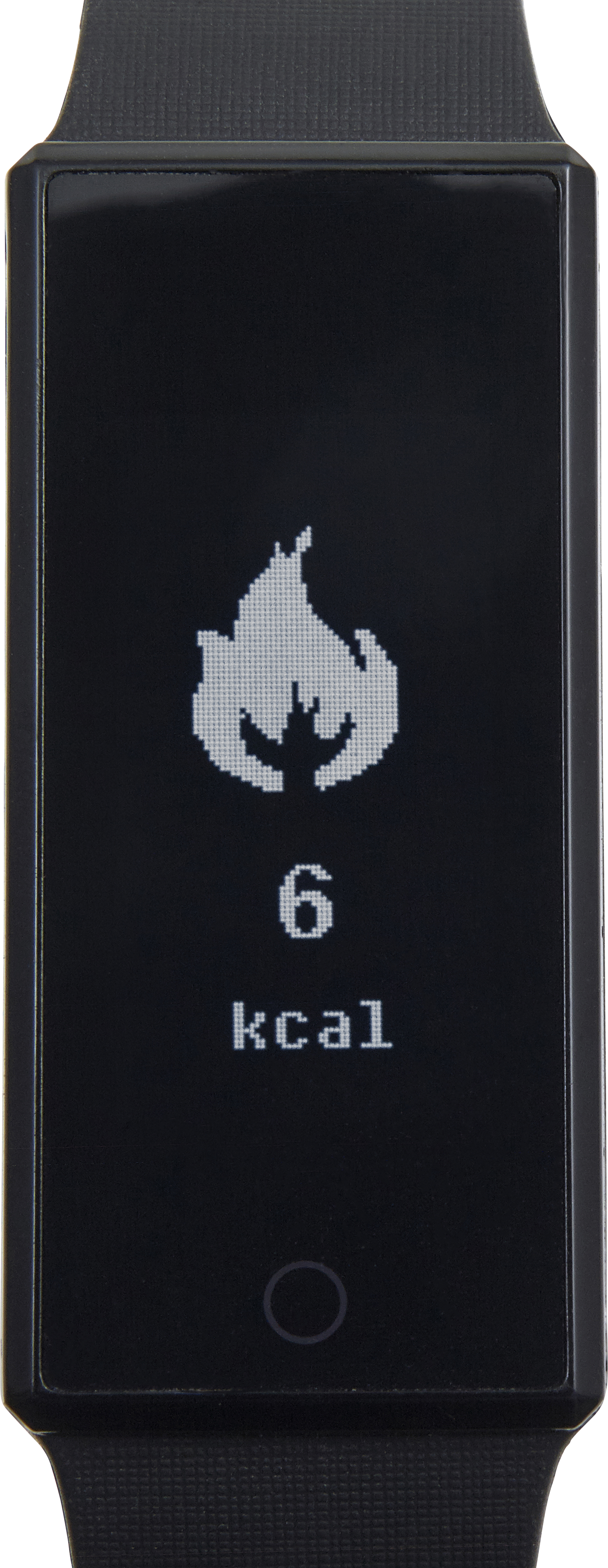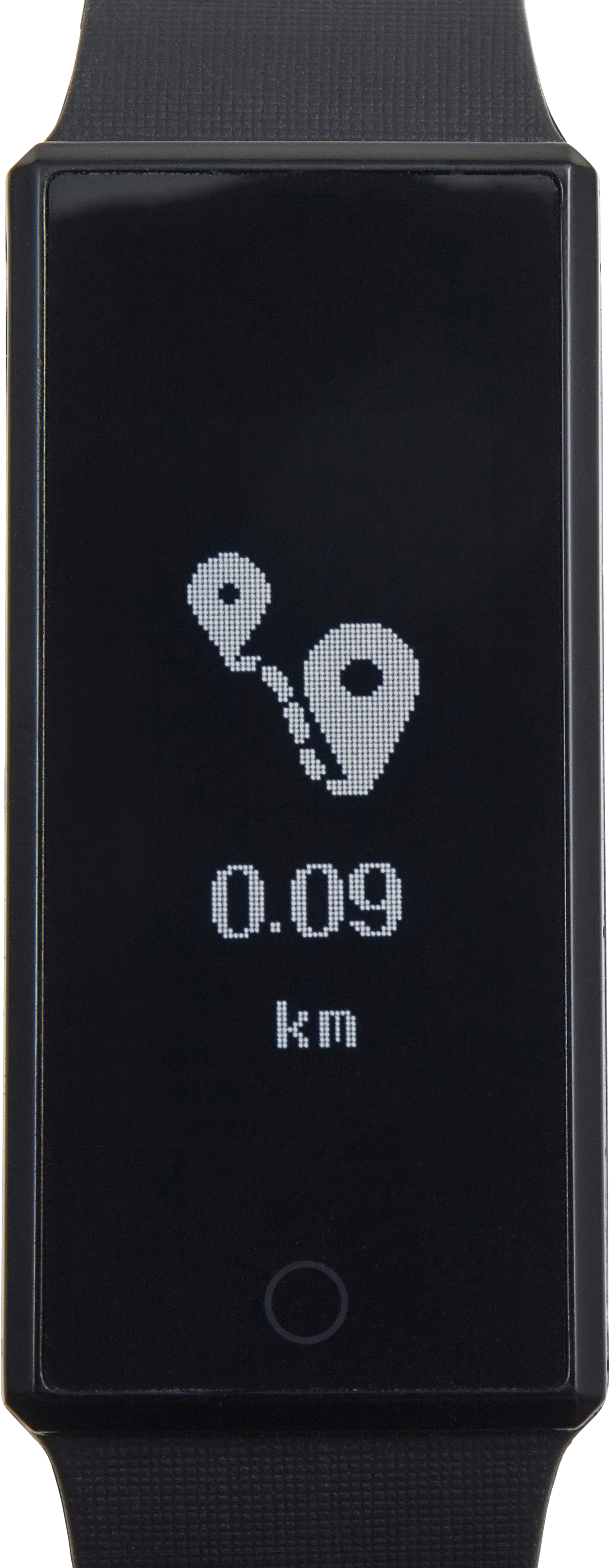 Stainless steel smartwatch with silicone strap and metal engraving plate. Displays time, counts steps & calories and tracks distance, heartrate, sleep. Size 250 x 19 x 8,5 mm. Screen resolution 128 x 64. Packaged in a white box.