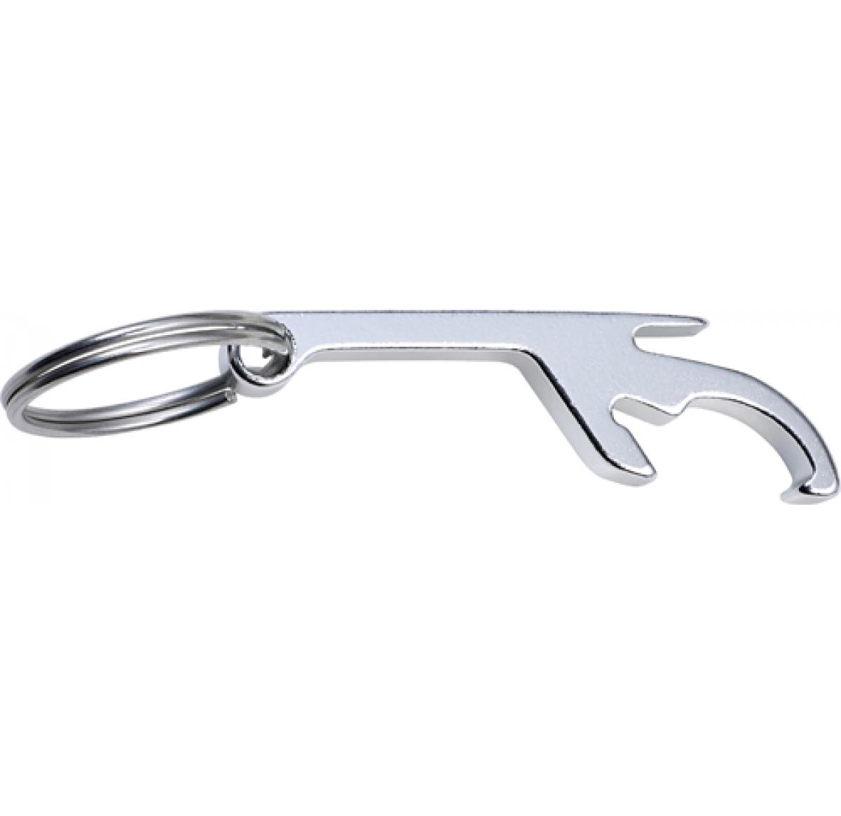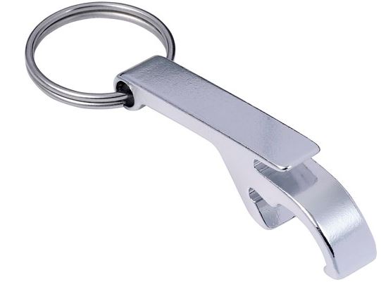 Aluminium key chain with a bottle opener and can opener in one.