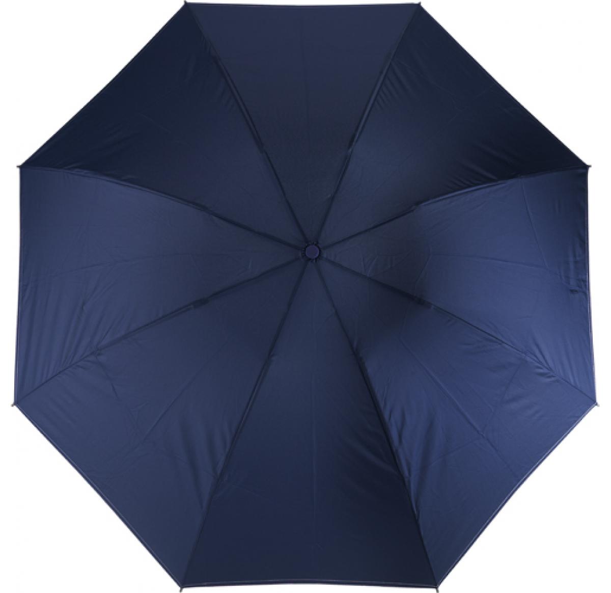 Foldable and reversible pongee (190T) umbrella with eight panels. Opens and closes automatically. The umbrella has a metal shaft, fibreglass ribs and plastic handle. Comes in a matching sleeve.
