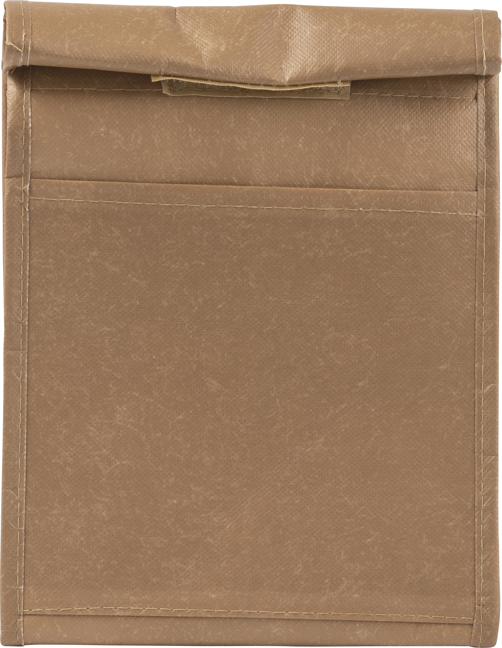 Cooling bag made of laminated nonwoven (100 gr/m²), looks like a brown paper bag. The interior is lined with insulating foil. Size: 19 x 32 x 12 cm.