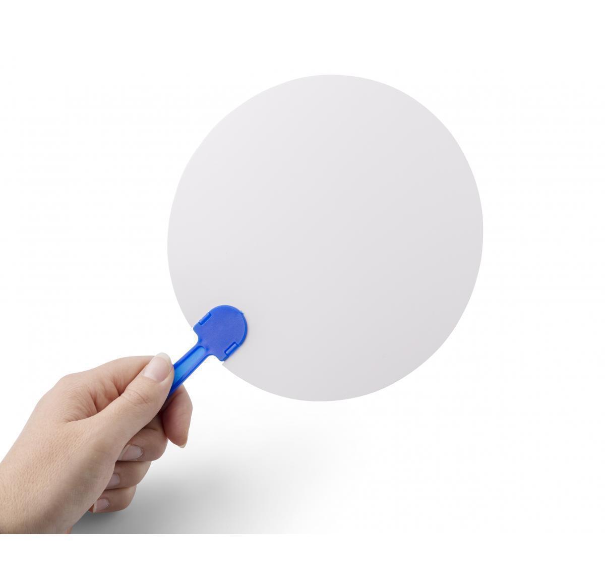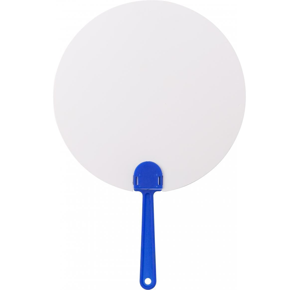 Paper hand fan with plastic handle. Diameter 17 cm.