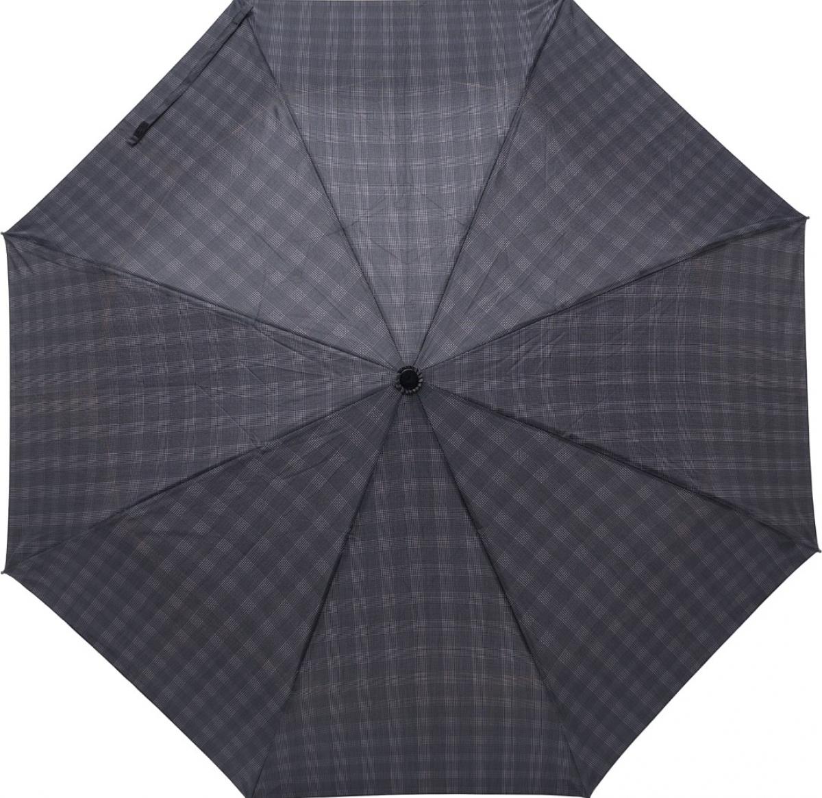 Pongee (190T) automatic, foldable umbrella with eight panels. Metal shaft, fibreglass ribs, and faux leather covered handle. Including nylon sleeve.