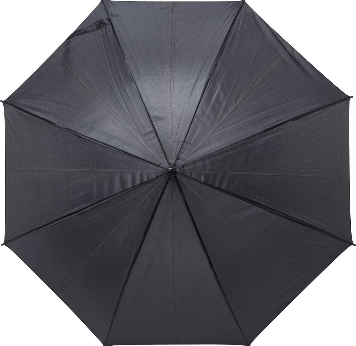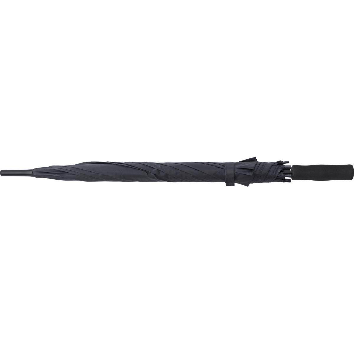 Polyester (170T) automatic umbrella with eight panels. Metal shaft and fibreglass ribs, and EVA handle.