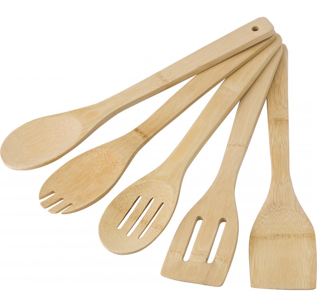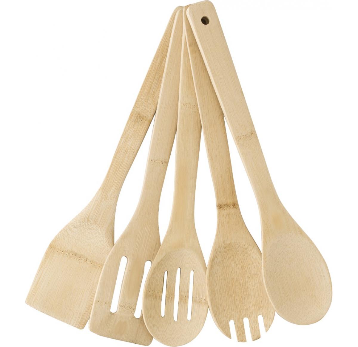 Custom Branded Wooden Spatula Sets Of Five - Bamboo