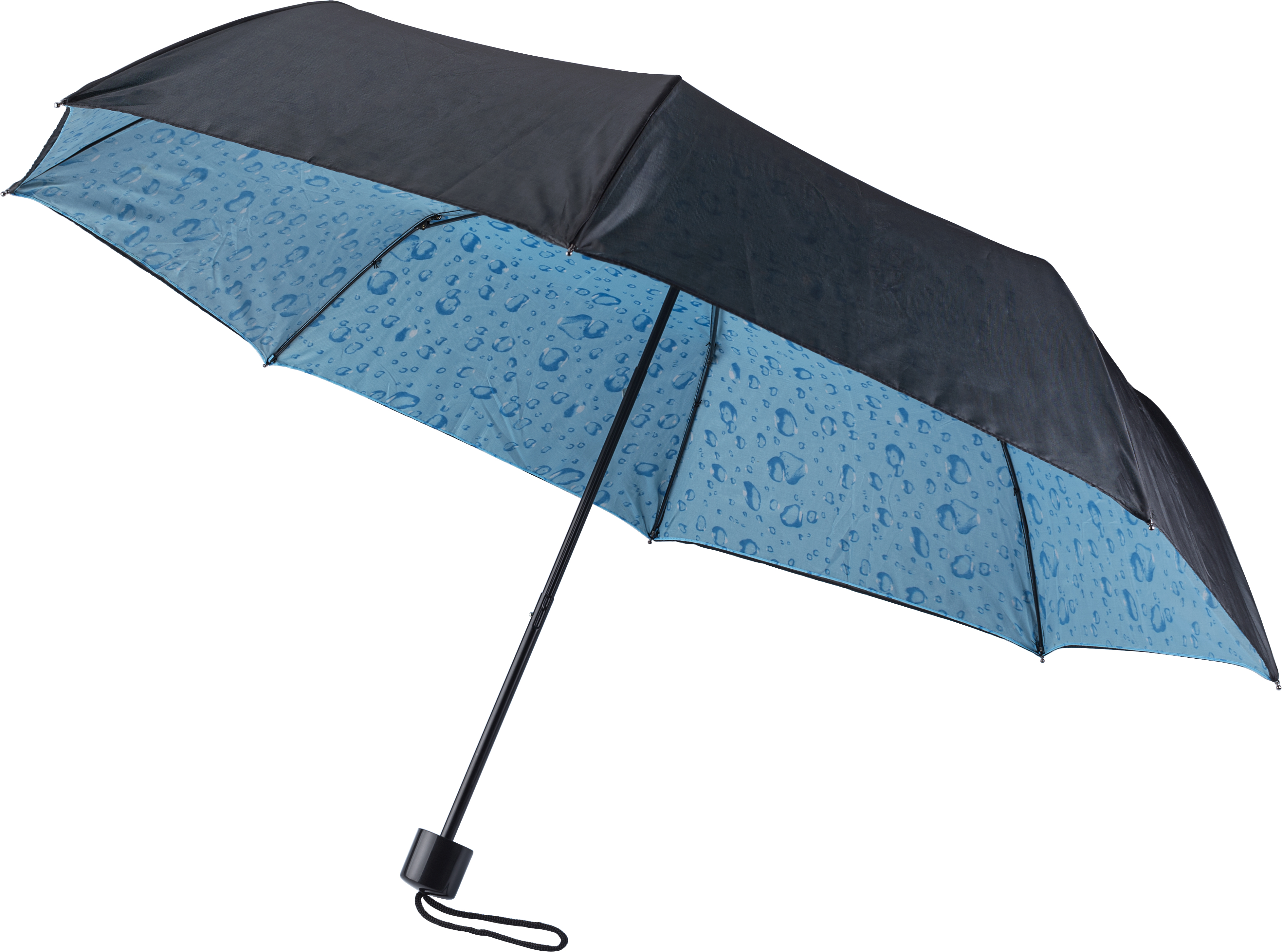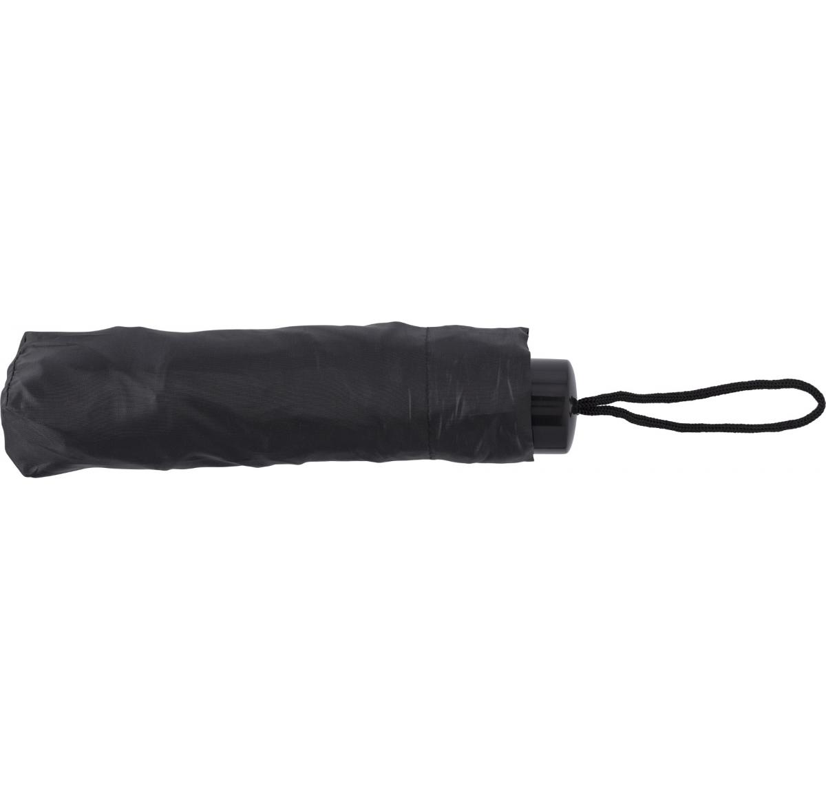 Polyester (170T) foldable, manual umbrella with eight panels. Metal shaft and handle. Double layered canopy.