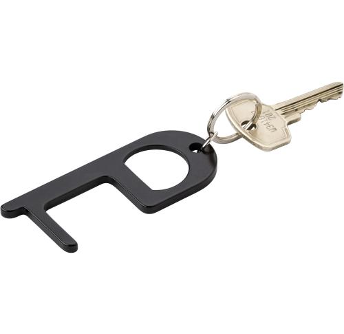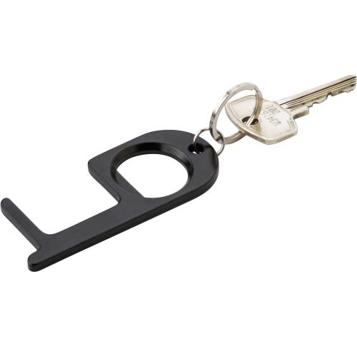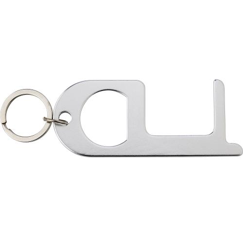 Aluminium door opener with bottle opener. Use the door opener to open doors and press buttons in public without having to touch them.