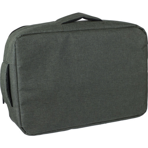Laptop backpack with a large zipped compartment with multiple insert pockets, a Velcro-closure laptop pocket for 15-inch laptop. The design includes a reinforced, ventilated backing, adjustable shoulder straps, a side carrying handle, and a trolley strap. Capacity 12L. Carrying capacity 10 kg.