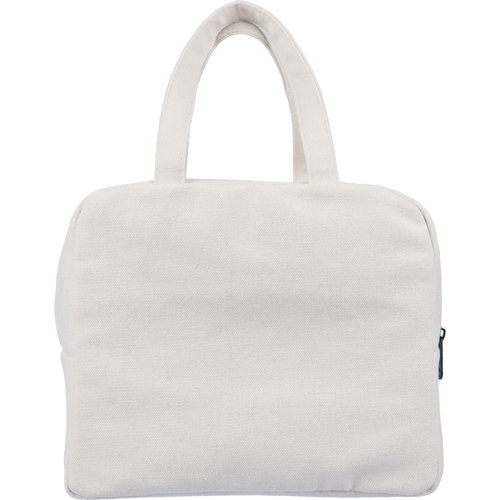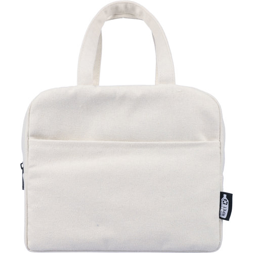 Recycled polycotton cooler bag with a 210D polyester lining and padded aluminium foil interior. The bag has an 8L capacity, a carrying loop and a 5 kg carrying capacity.
