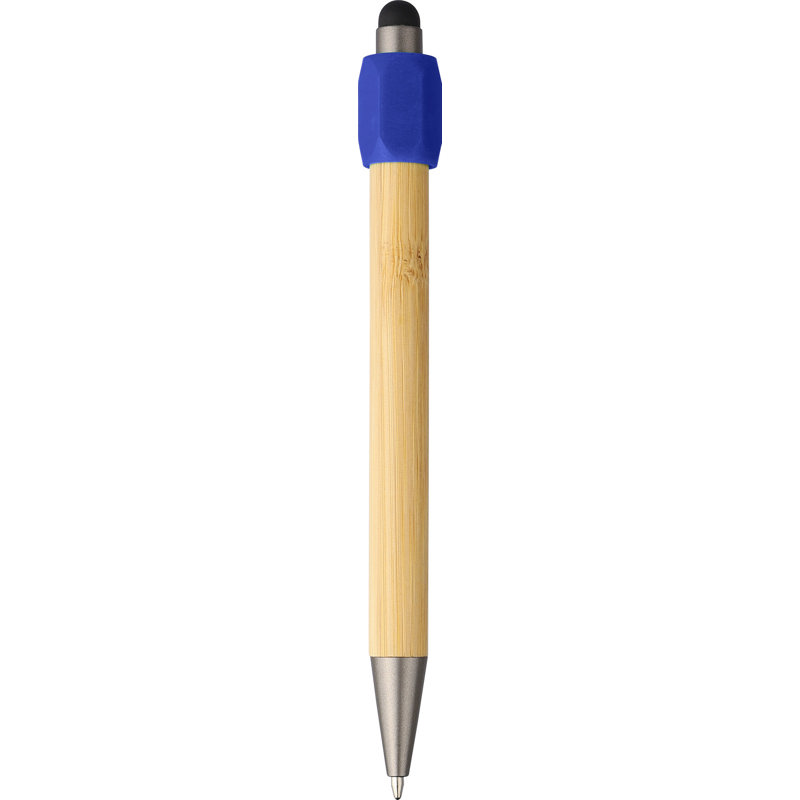 Bamboo ballpen with a recycled spinner function and stylus. Includes a recycled logo.