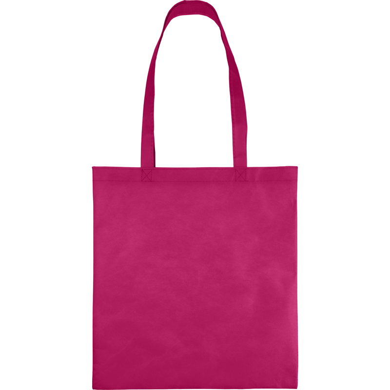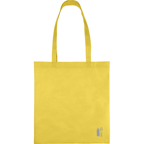 Recycled non-woven tote bag (80gsm) with cross-stitched handles. Features one spacious compartment. Capacity 11 litres, carrying capacity 7kg.