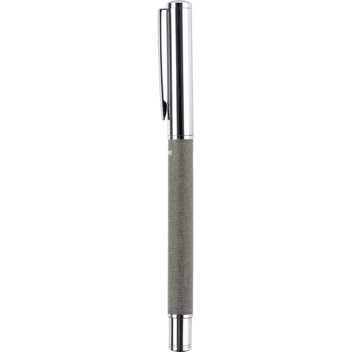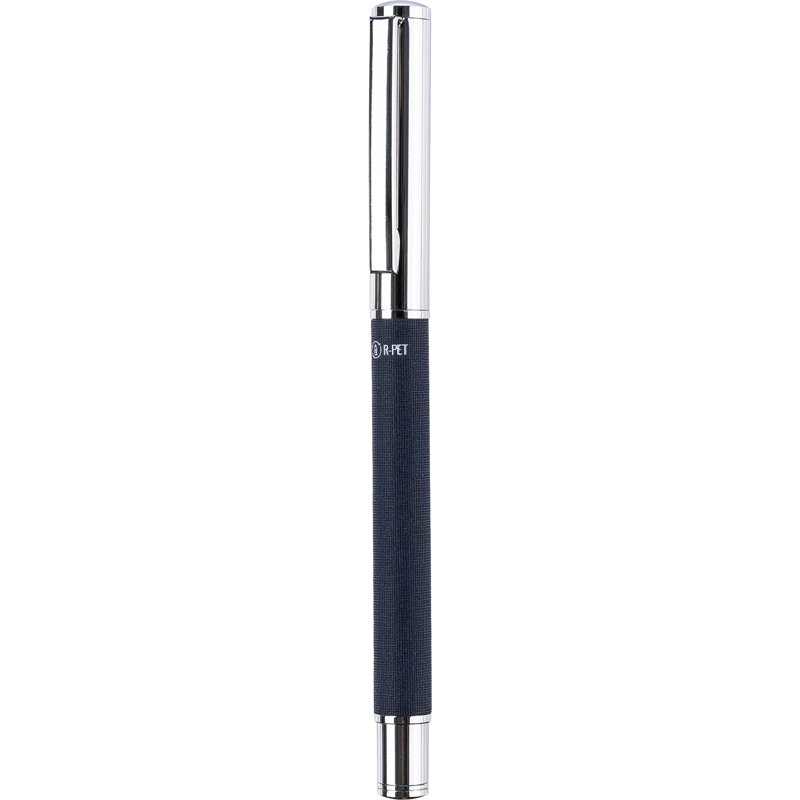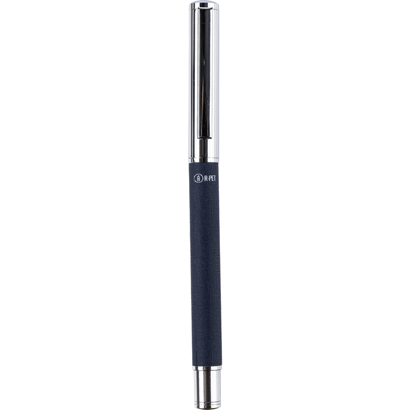 Brass and rPET rollerpen with an rPET logo on the body. Individually packaged in a brown cardboard box.
