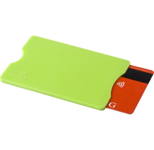 Plastic card holder with RFID protection, designed to block RFID readers from scanning your bank details.