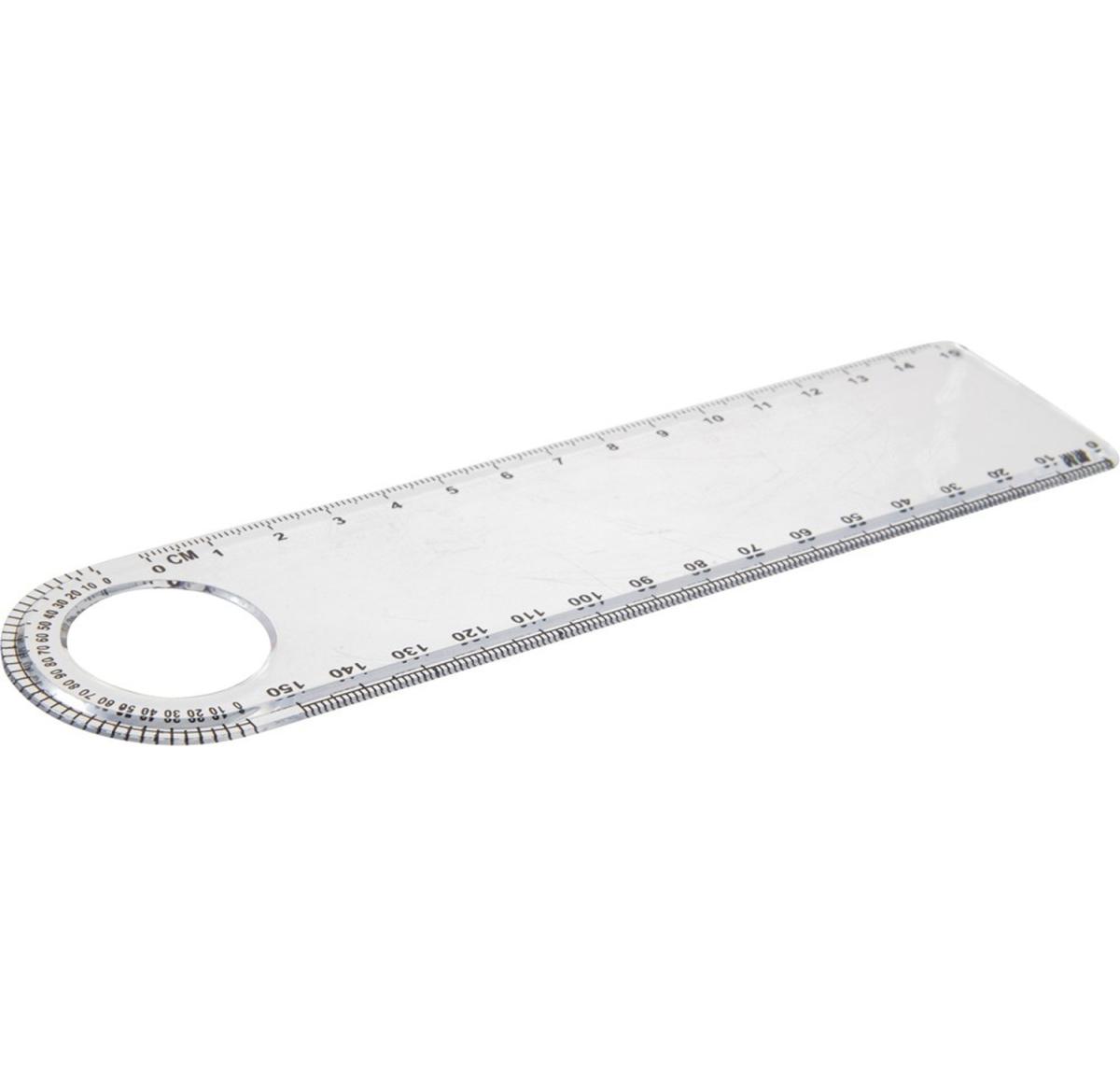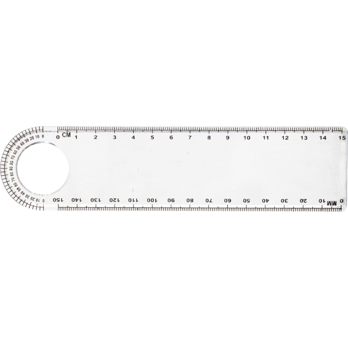 Plastic transparent ruler (15cm) with loupe and protractor.