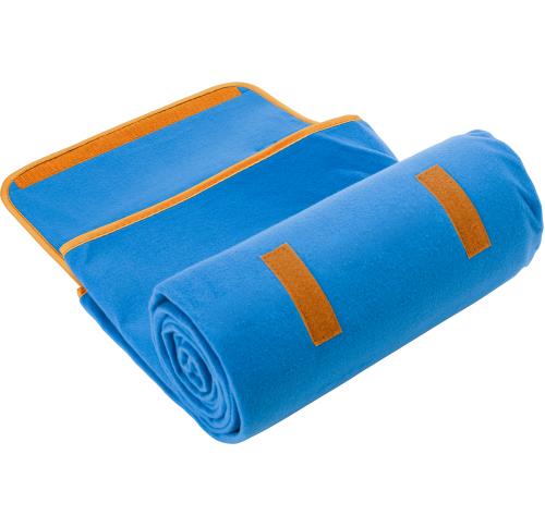 Fleece picnic blanket with waterproof PEVA underside and sponge filling. When folded up the blanket has an easy carry handle.