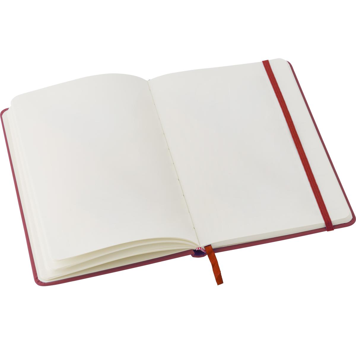 Notebook (approx. A5) with 96 blank pages, an elastic strap for closing and a ribbon bookmark.