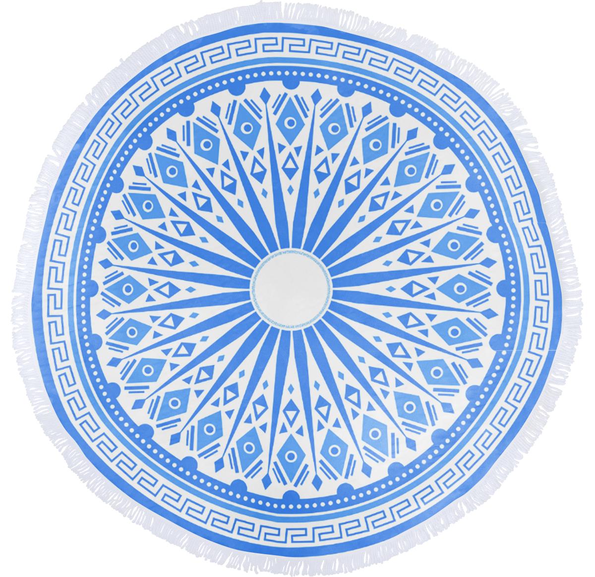 Microfiber (160 gr/m2) round beach towel with a diameter of 150 cm.