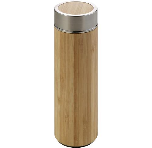 Bamboo and stainless steel double walled vacuum bottle with tea infuser (420 ml)