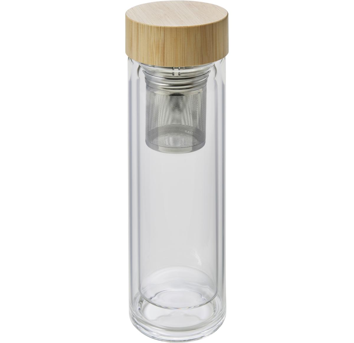 Bamboo and glass double walled vacuum bottle with a tea infuser (420 ml)