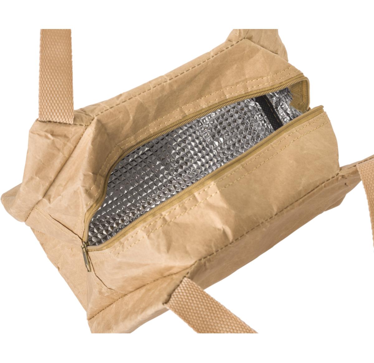 Kraft paper lunch cooler bag with aluminium foil lining.