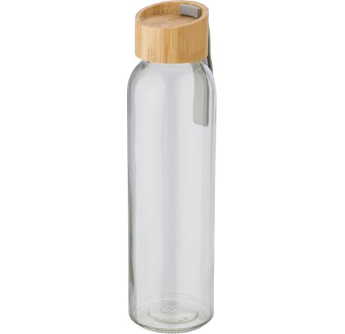 Glass bottle (600 ml) with bamboo screw cap and silicone band.