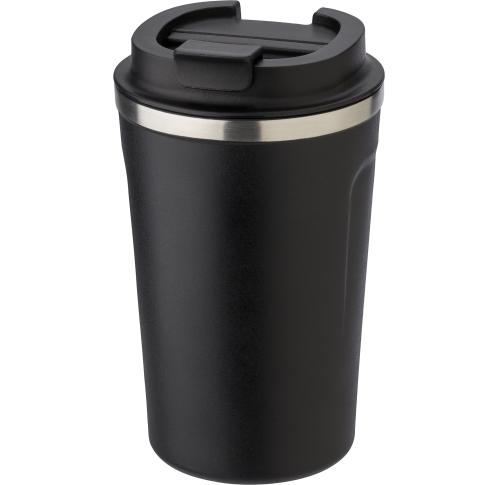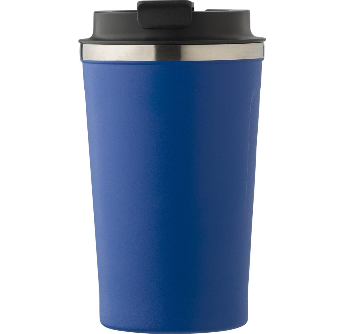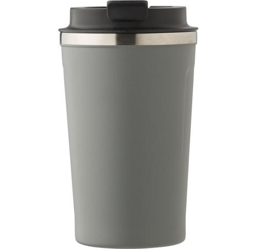 Stainless steel double-walled mug (380ml). The lid has a drinking opening with closure