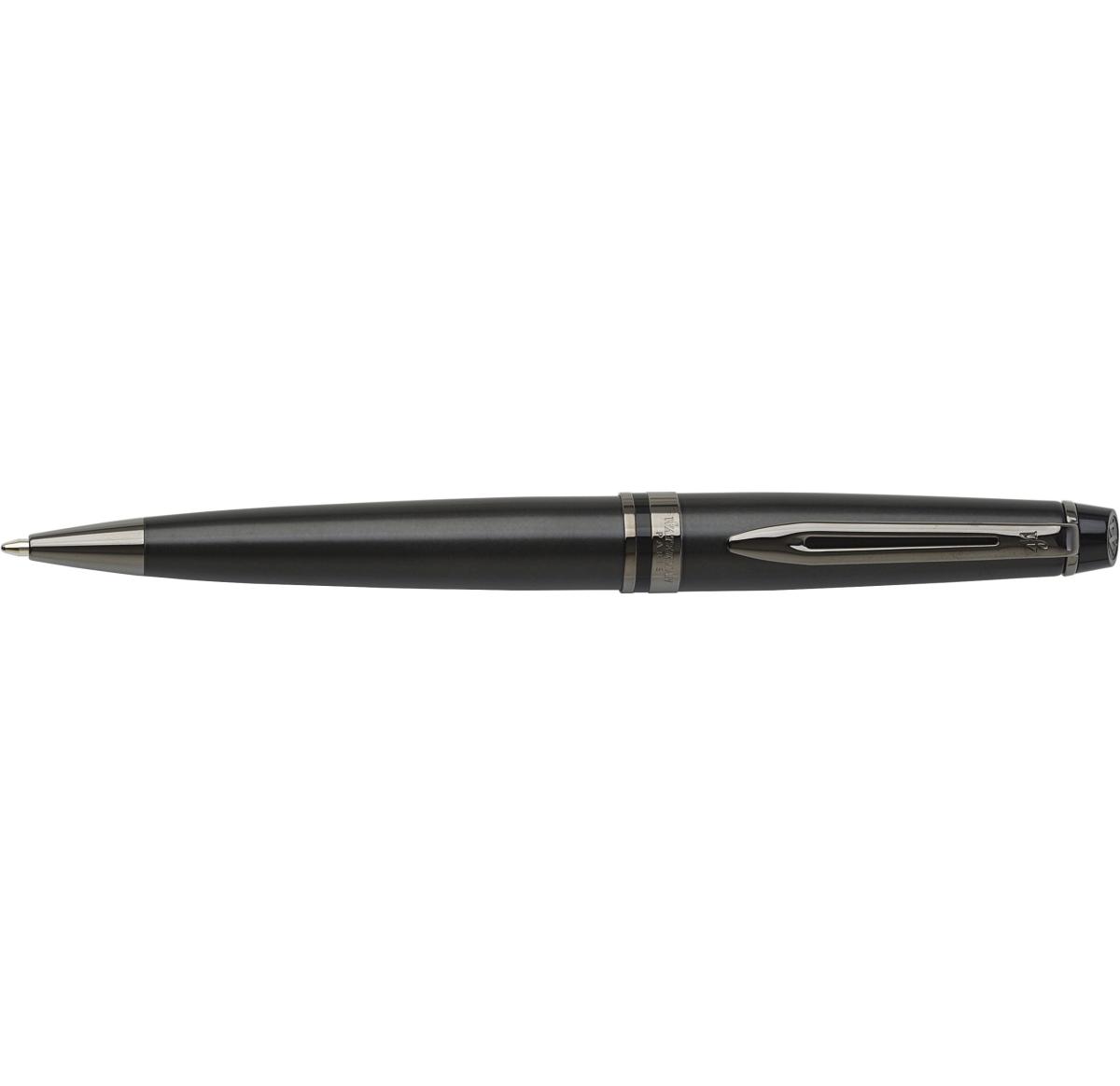 Metal ballpen with ruthenium trim. Blue ink. Pre-packaged in giftbox