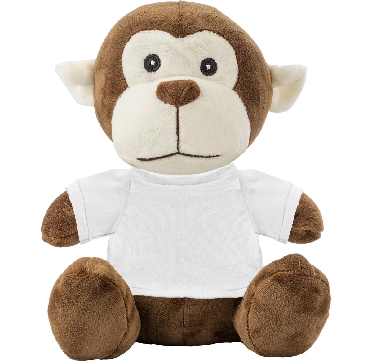 Plush monkey with embroidered eyes and mouth. For printing onto the t-shirt, please order plain stock and then go to 5013 to add this option.
