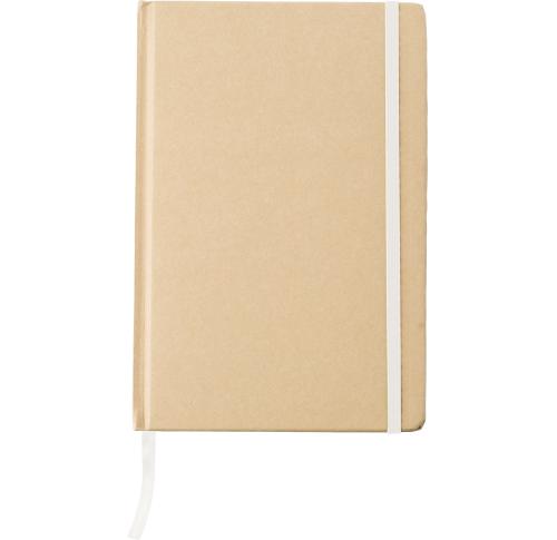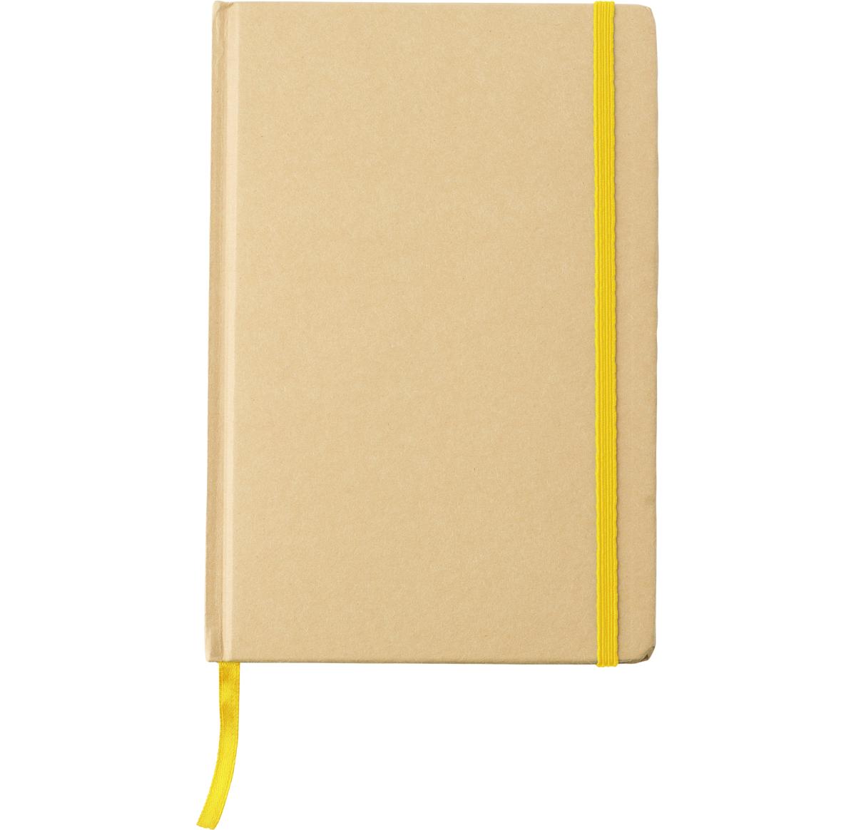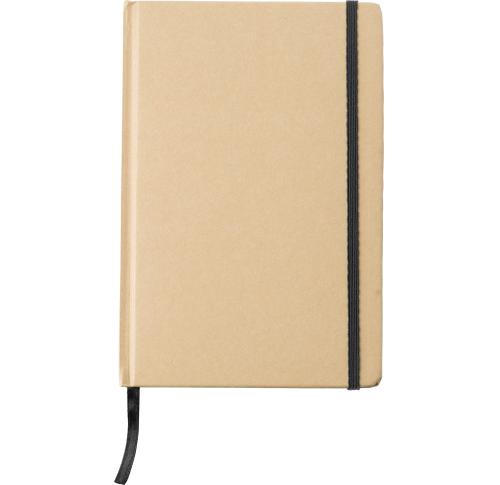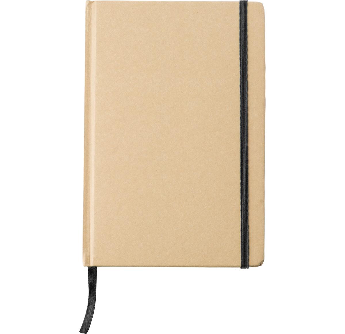 Recycled Paper Notebook where sustainability meets creativity. Crafted from 100% recycled paper, it's a versatile companion for your thoughts, ideas, and sketches. Enjoy smooth writing, durability, and a personal touch as you make a positive impact with every page. Approx. A5, 160 lined pages, recycled paper, coloured ribbon marker & elastic nylon band.