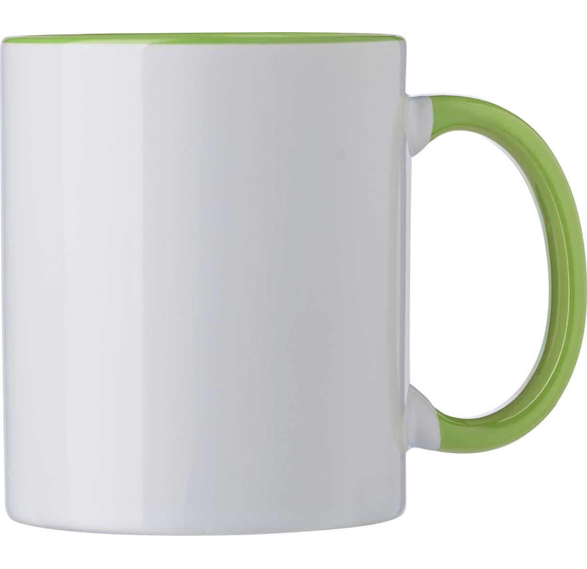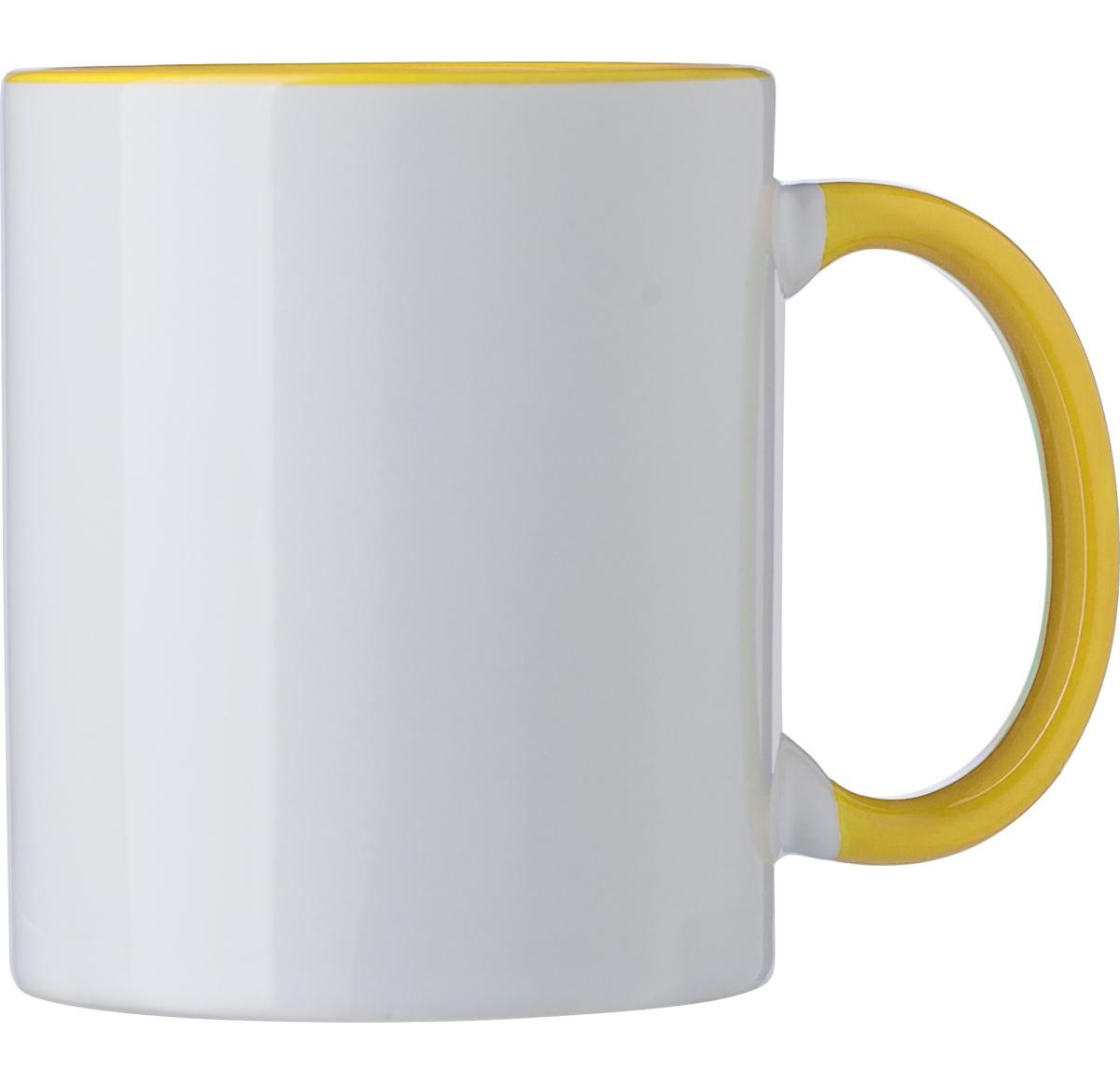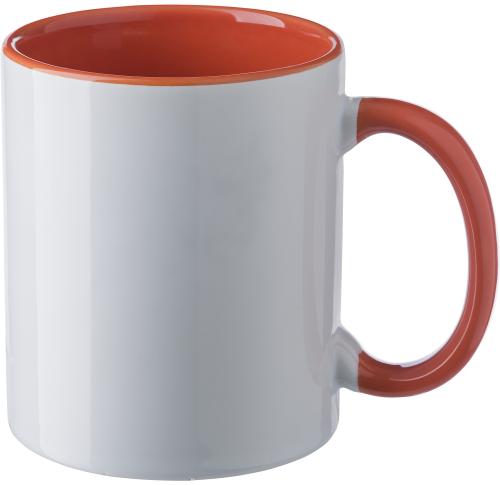 Ceramic mug with coloured handle and interior. This item is especially suitable for sublimation print.