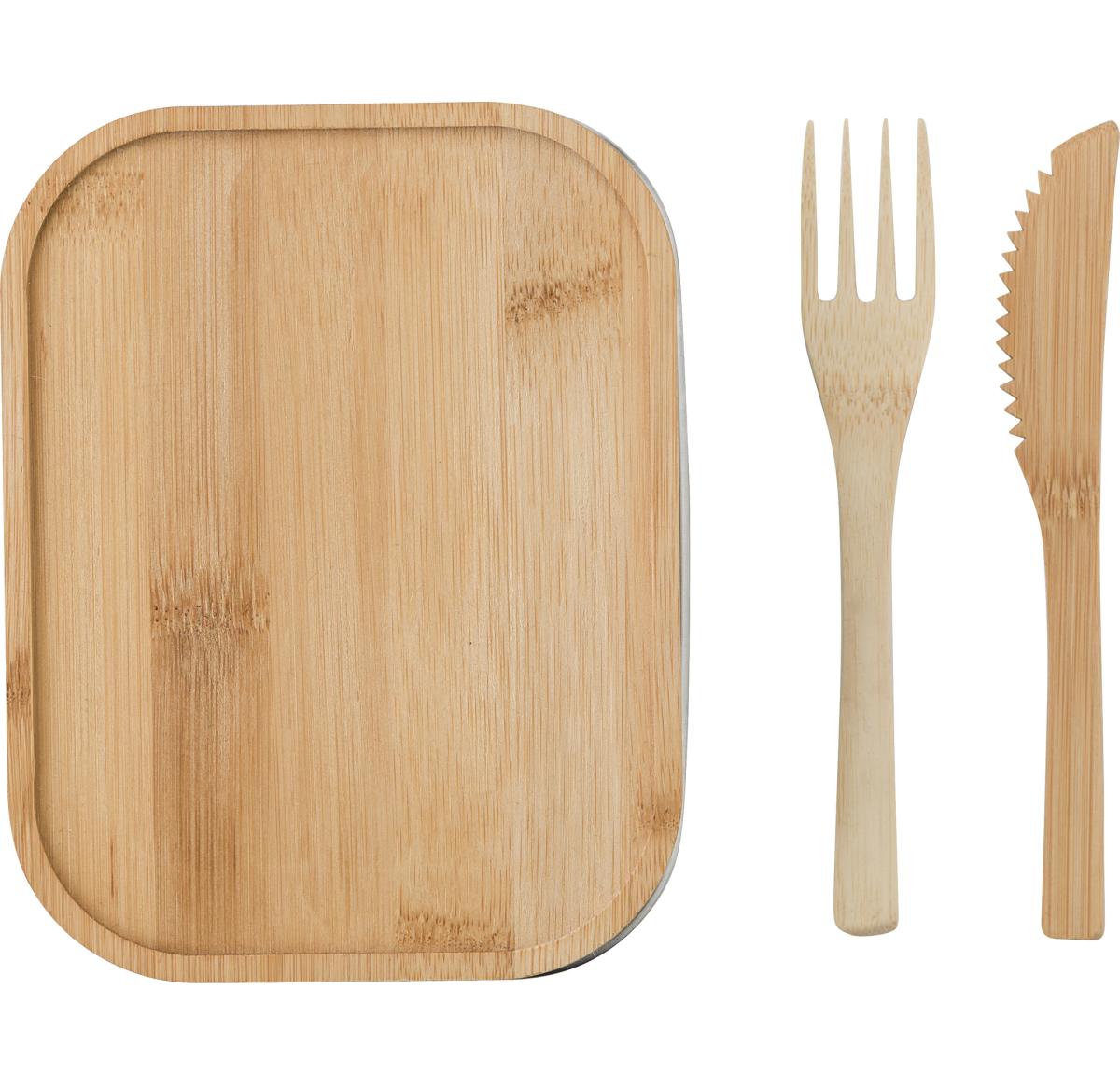 Elevate your lunchtime with our Stainless Steel Lunch Box featuring a Bamboo Lid, Knife, Fork, and Nylon Strap. It's durable, eco-friendly, and perfect for meals on-the-go. Stylish, sustainable, and spill-proof - get yours now! 600 ml capacity