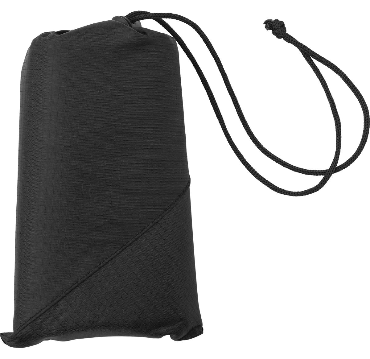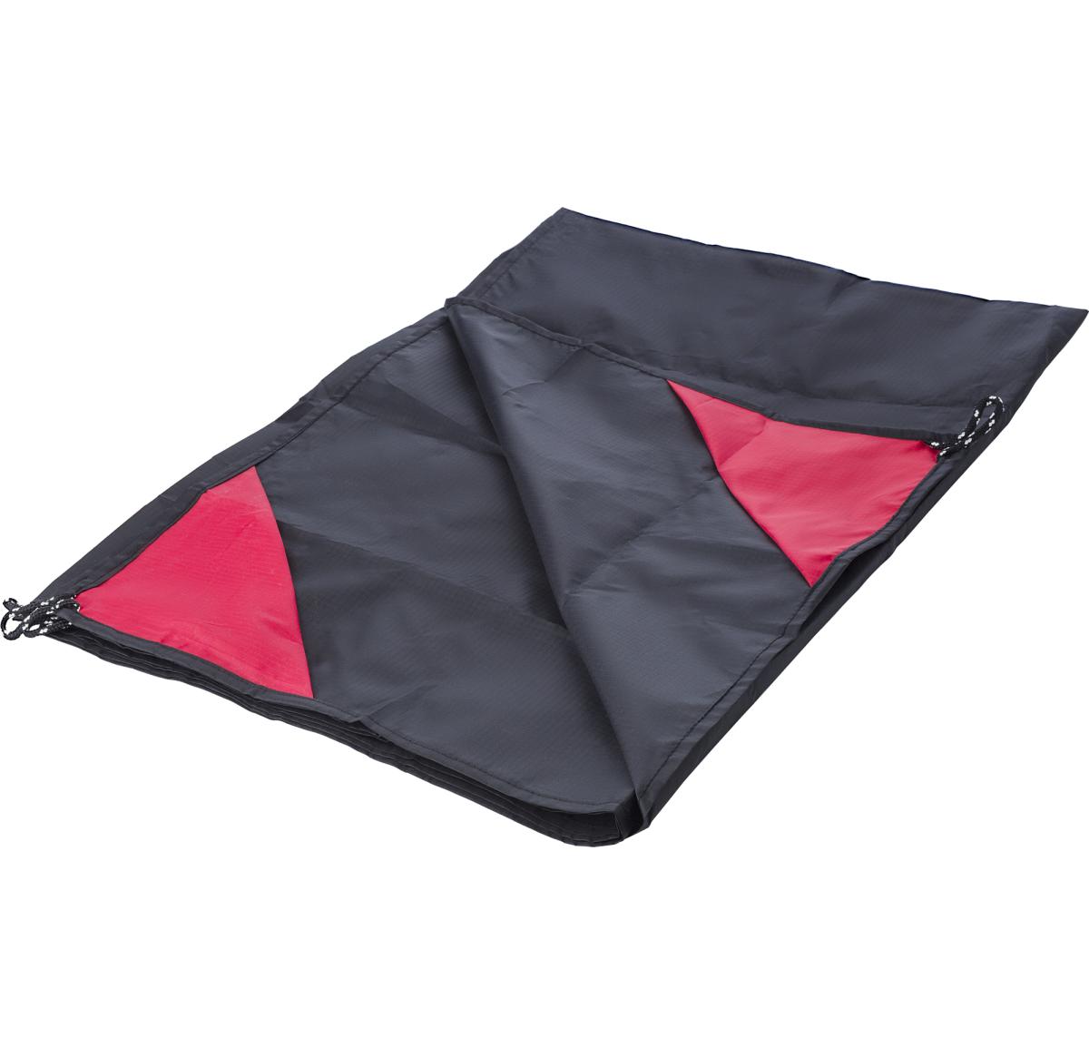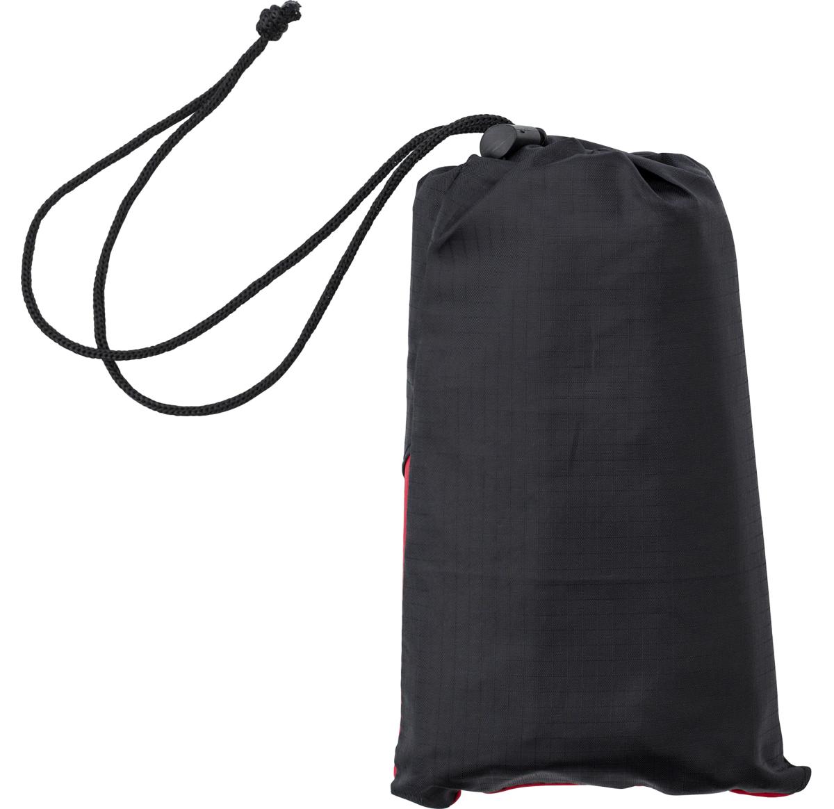 Polyester foldable blanket packed in a pouch. Unfolded size 140 x 100 cm.