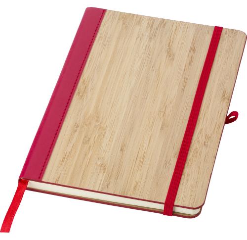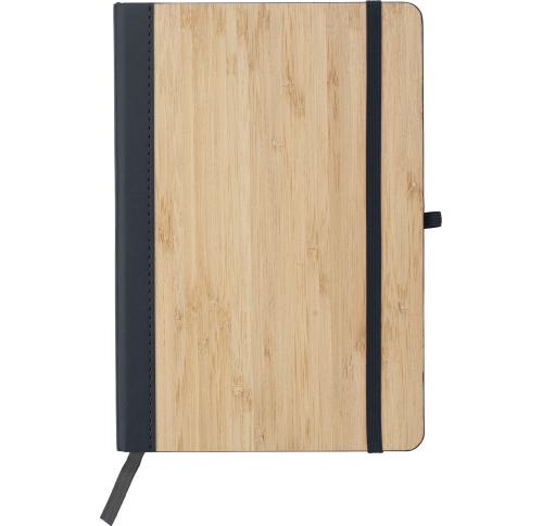 PU Notebook with a bamboo cover, 96 lined pages and a elastic band closure. (approx. A5)