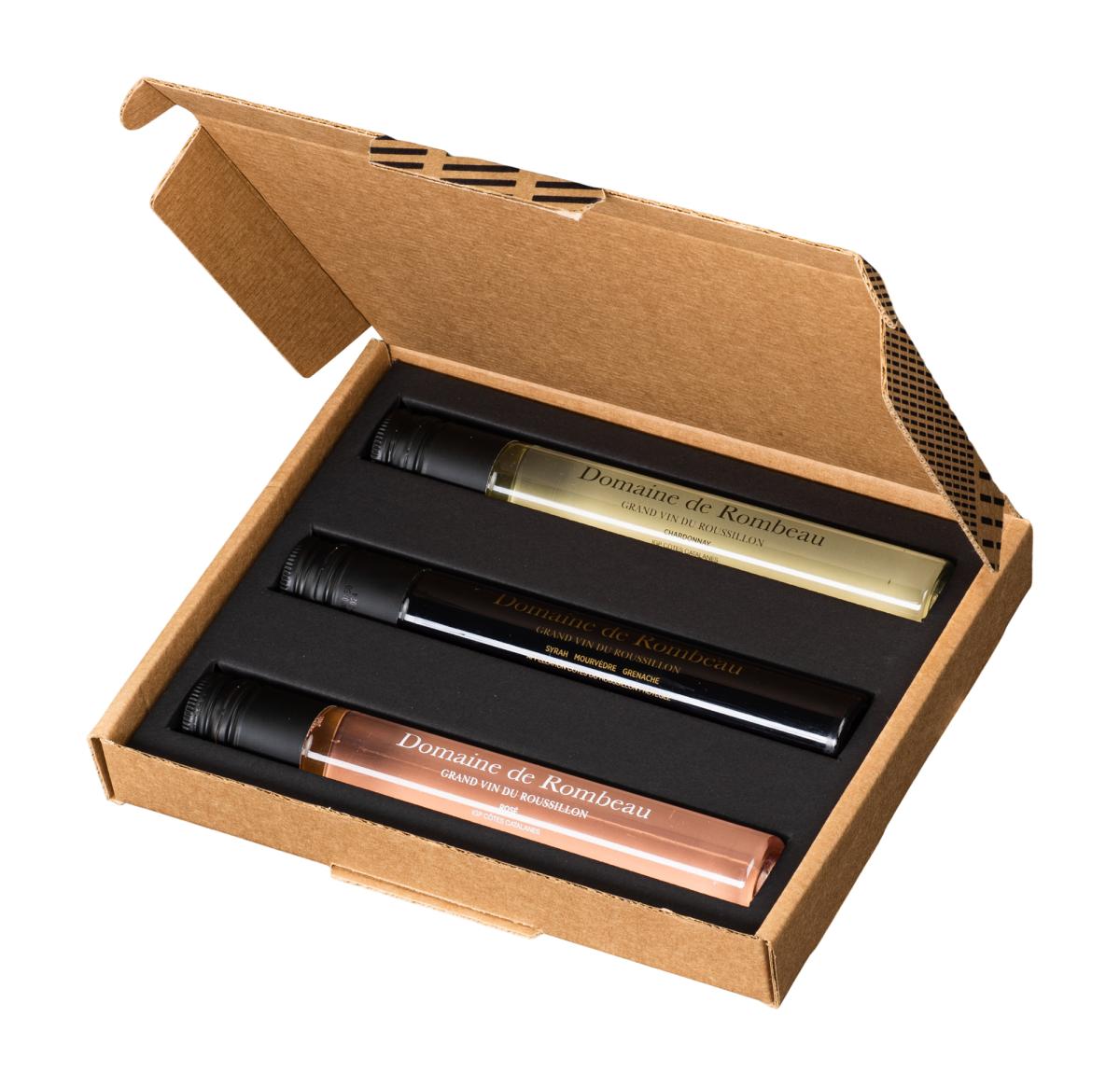 Indulge in the splendid flavours of Domaine de Rombeau with our Wine Tasting Set elegantly presented in a charming kraft letterbox. This thoughtfully curated collection features three rPET tubes, each containing 100ml of meticulously selected wines. Whether you're an avid wine enthusiast or embarking on a journey to explore new tastes, this set promises a sensory adventure that captures the essence of Domaine de Rombeau's exceptional winemaking artistry. Perfect as a sophisticated gift!