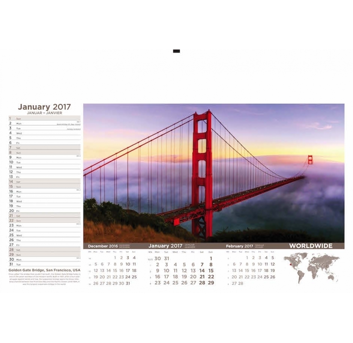Worldwide Wall Calendar 2025 Printed Business Logo