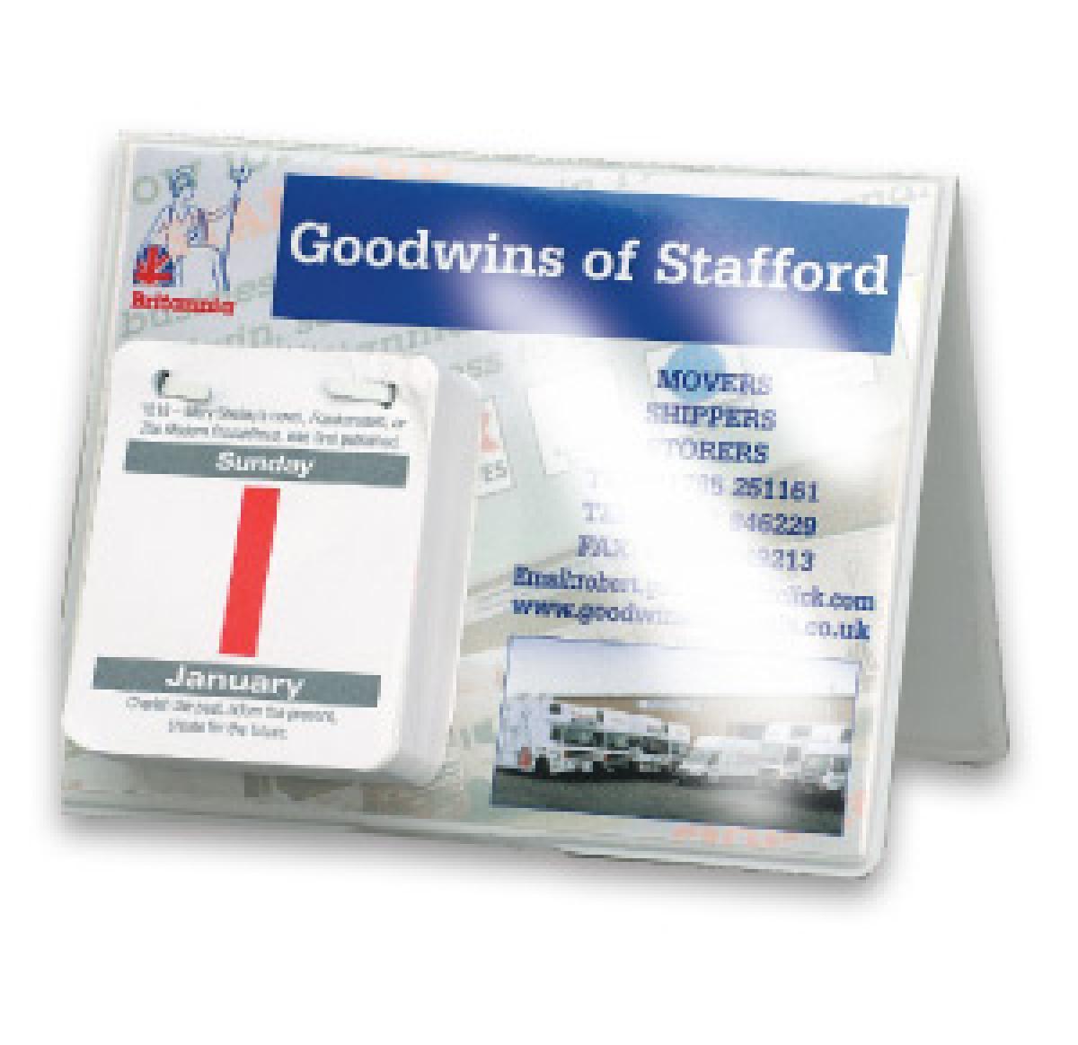 Large Bespoke PVC Easel. Encapsulated, full colour sheets front & reverse to your design, with Daily Pad. Packed in cartons. (available in smaller size).