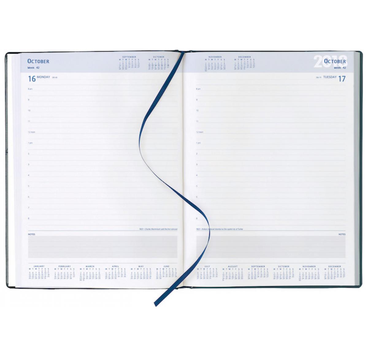 A4 Pagaday desk diaries with a 4-colour process cover - flat to board. Gloss or Matt laminate. White paper. Ribbon marker. Perforated page corners. Packed in bulk.