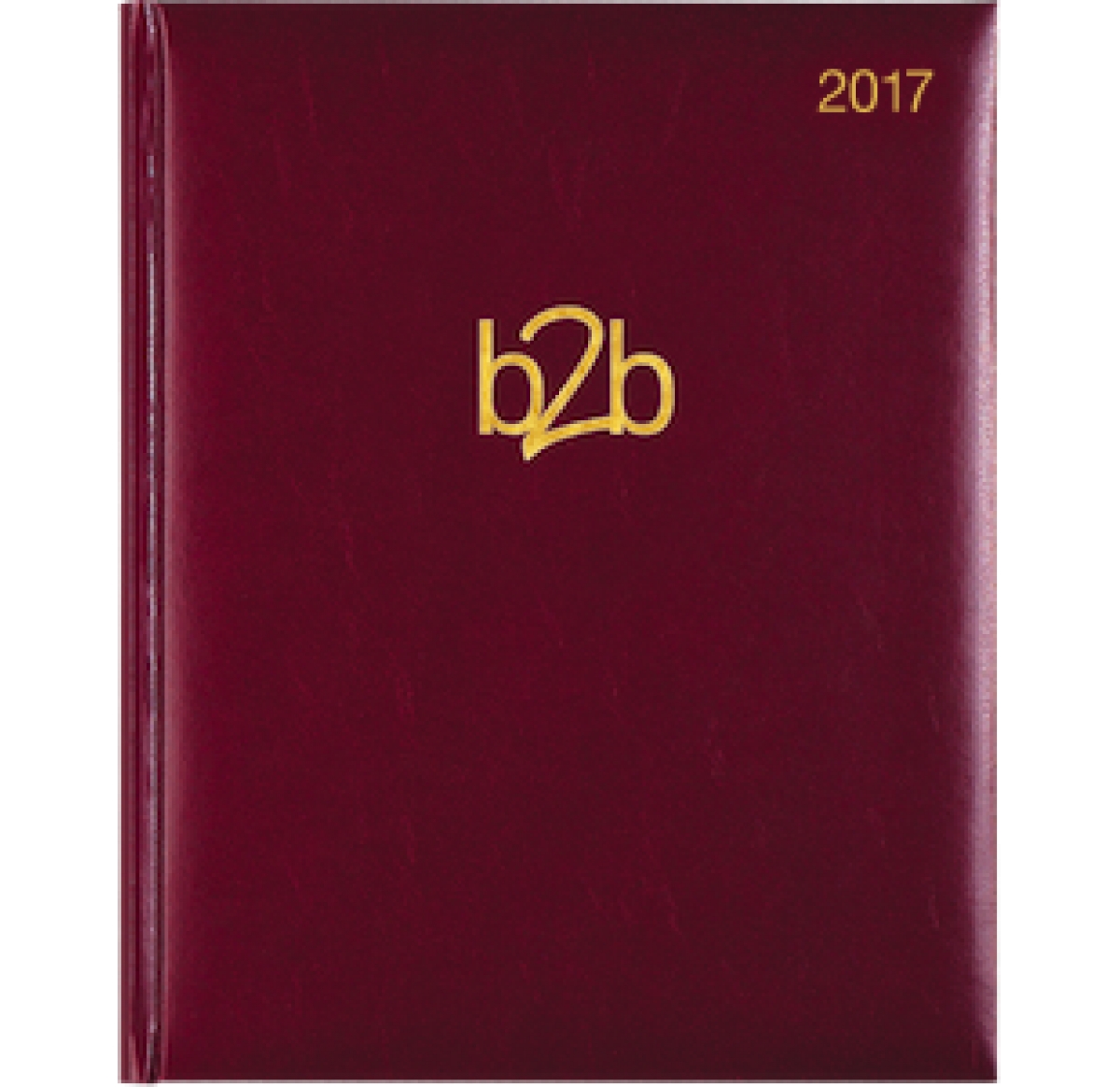 Management Deluxe desk diaries. Bound in Strata. Cream paper. Gold blocked front cover - 1 wording 1 position. Year date gold blocked top right. Padded front and rear covers. Gilt edges. Ribbon marker. World Maps. Perforated page corners. Packed in bulk.