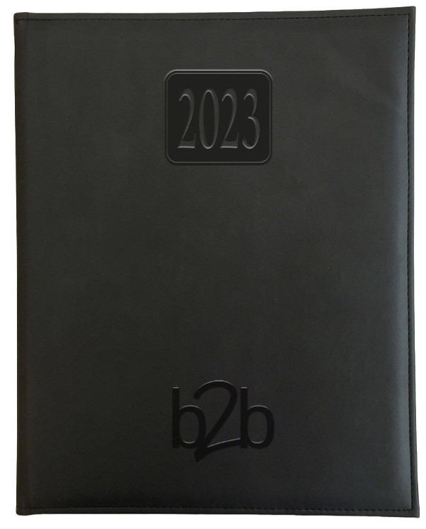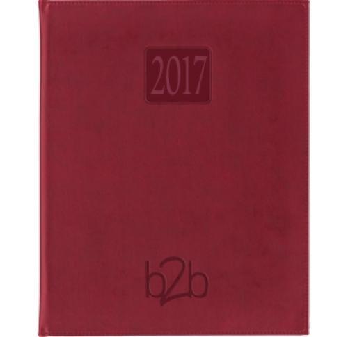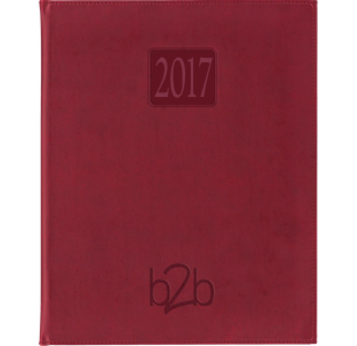 Management desk diaries. Bound in Rio. Cream paper. Blind embossed front cover - 1 wording 1 position. Year date pre-embossed top centre. Padded front and rear covers with thread perimeter stitching. Gilt edges. Ribbon marker. World Maps. Perforated page