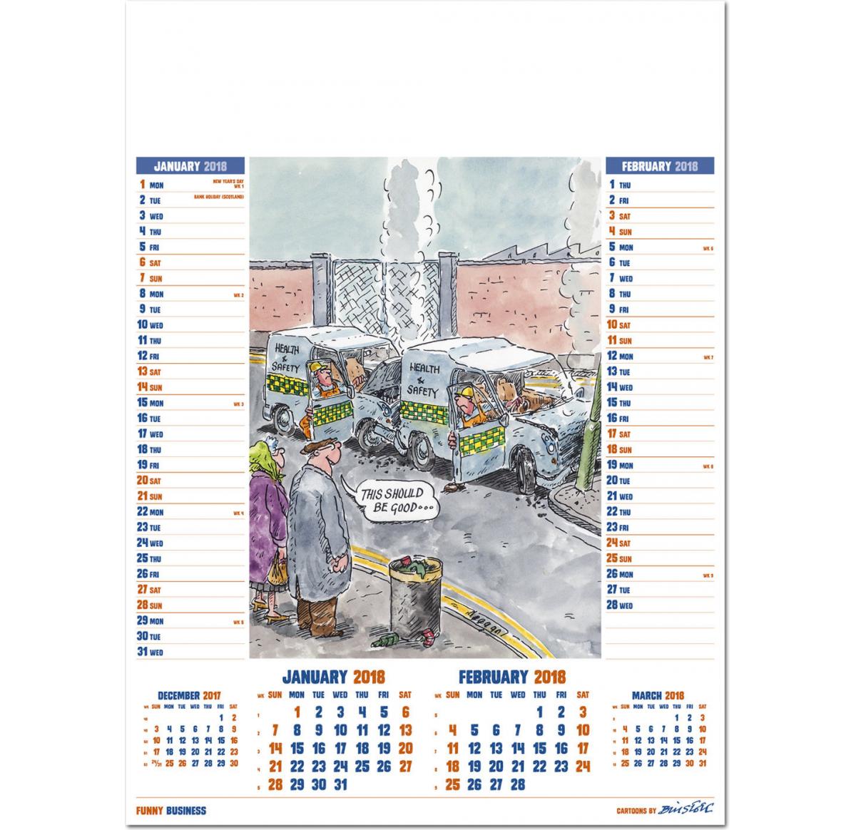 7 leaf pictorial wall calendar with everyday workplace cartoons