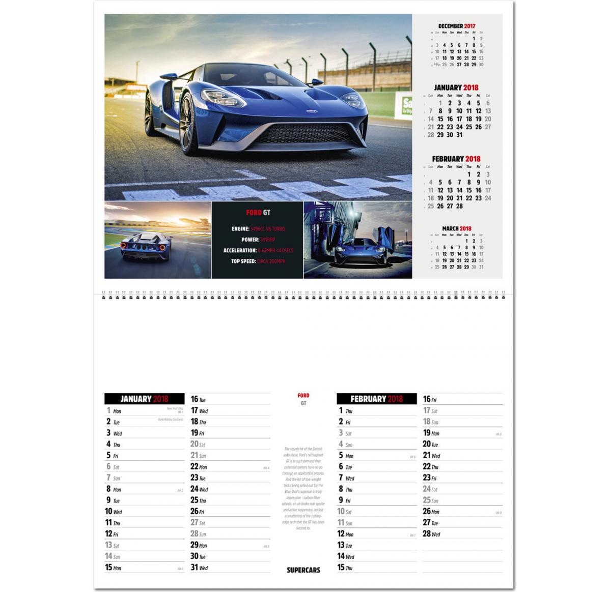 13 leaf pictorial wall calendar with supercars from Ferrari to Porsche