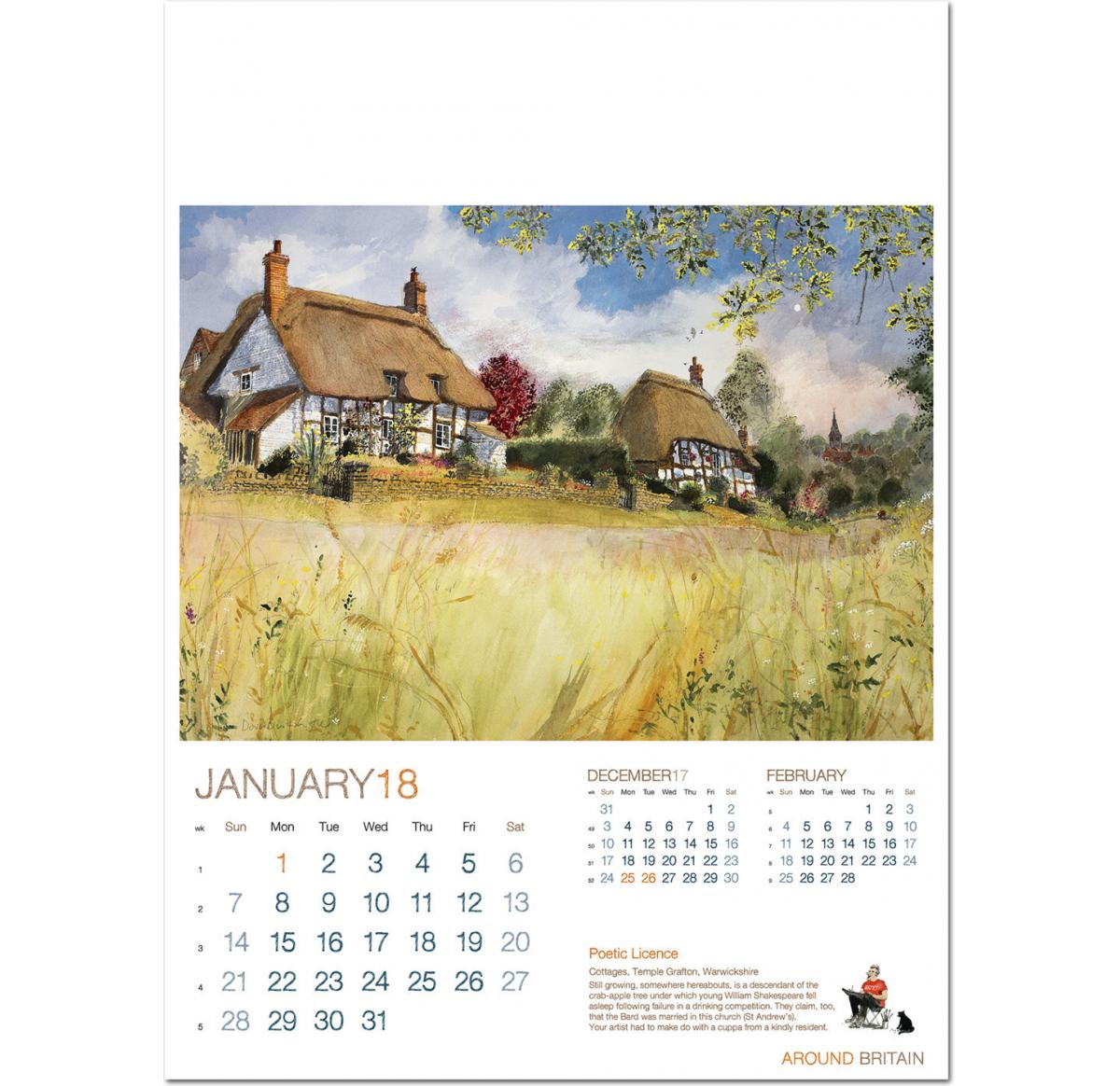13 leaf pictorial wall calendar with paintings of British landscapes with witty notes
